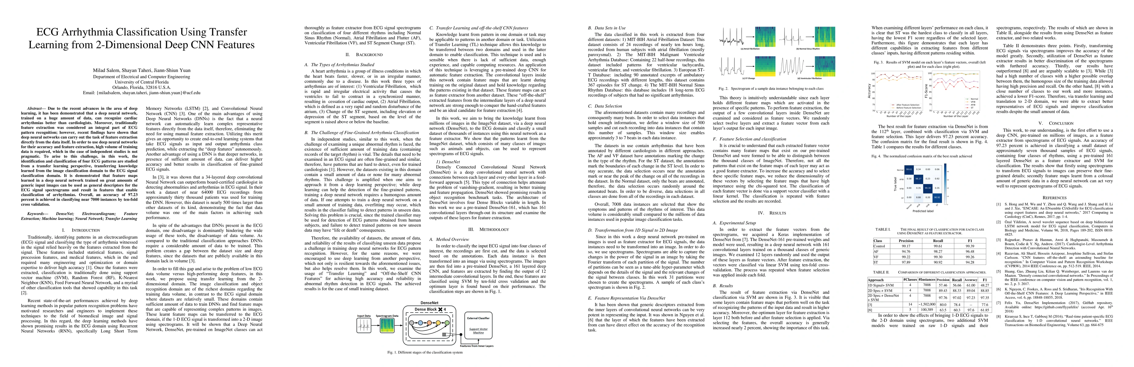 This paper explores ECG arrhythmia classification using transfer learning from 2-D deep CNN features, demonstrating that deep neural networks can extract features directly from ECG data. The study achieves 97.23% accuracy by transferring knowledge from image classification to ECG signal classification, overcoming the challenge of limited training data.