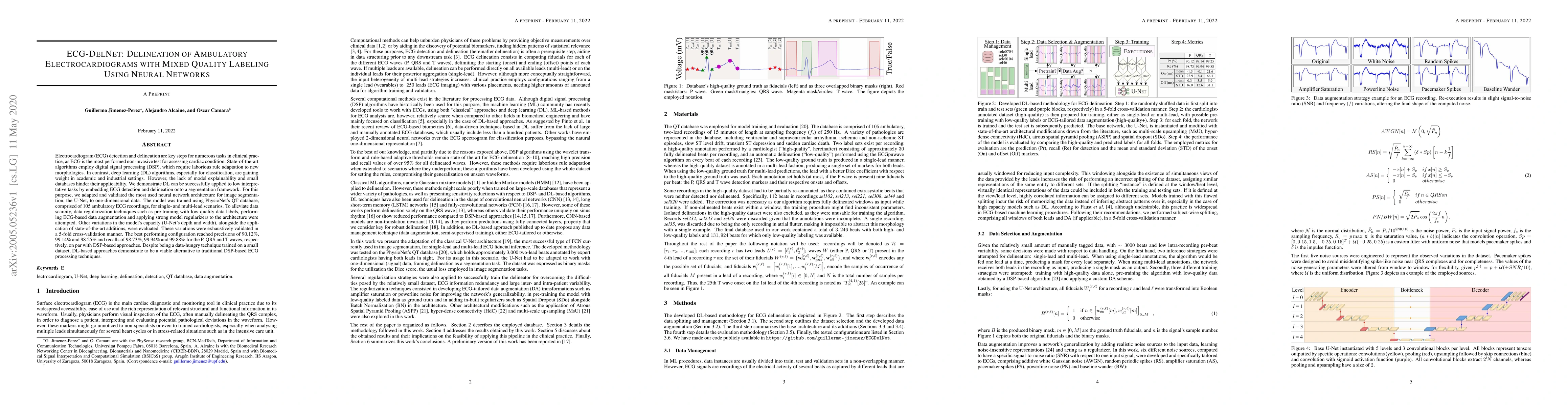 This paper presents ECG-DelNet, a deep learning approach using a modified U-Net for the delineation of ambulatory ECGs, achieving high precision and recall comparable to traditional DSP methods. The study employs data augmentation and regularization techniques to address the scarcity of training data.