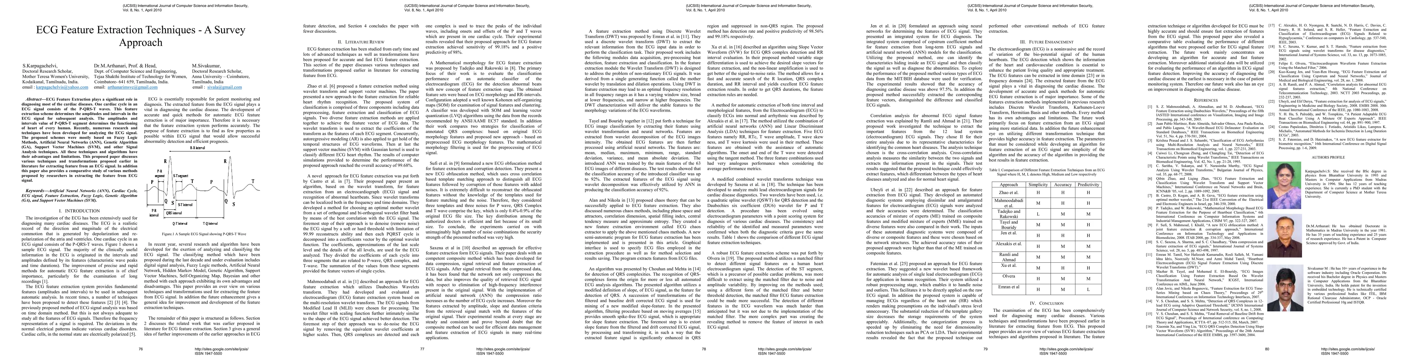 This paper surveys various techniques for extracting features from ECG signals, crucial for diagnosing cardiac diseases, and compares methods like Fuzzy Logic, ANN, GA, SVM, and others, highlighting their advantages and limitations.