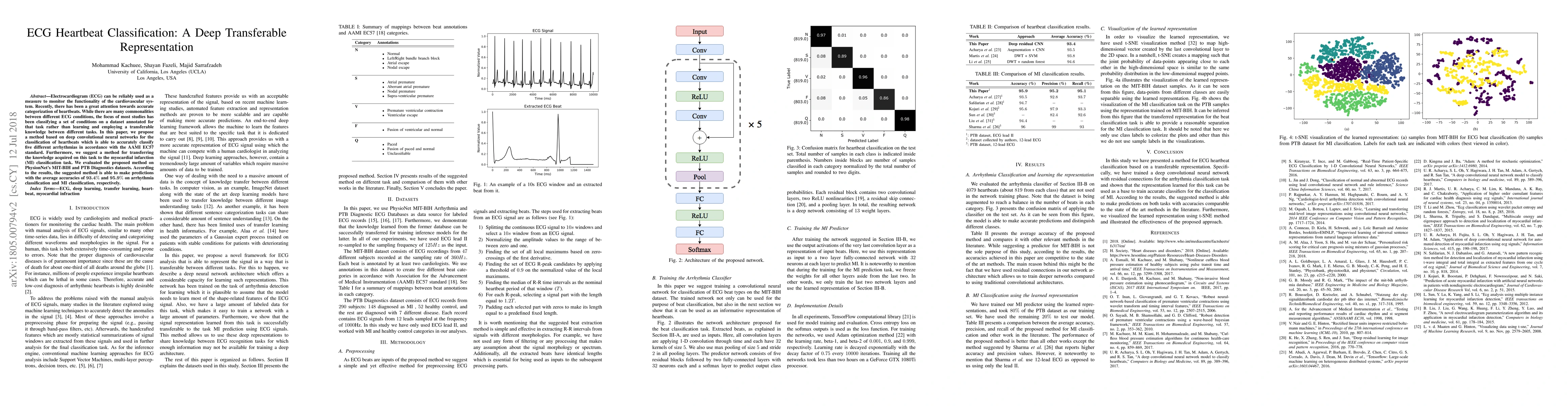 The paper introduces a deep residual CNN architecture for ECG heartbeat classification and demonstrates the transferability of the learned representation to myocardial infarction classification.