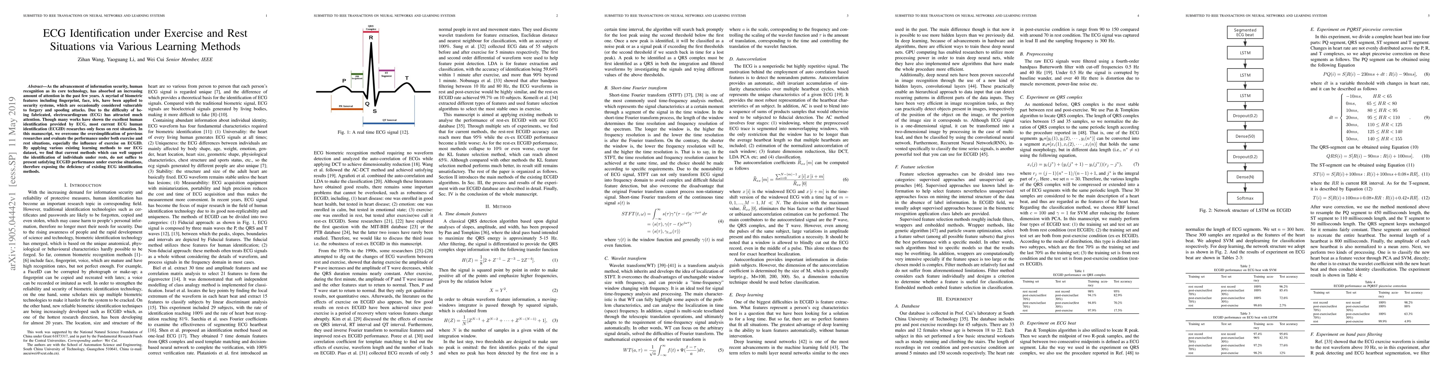 As the advancement of information security, human recognition as its core technology, has absorbed an increasing amount of attention in the past few years. A myriad of biometric features including fingerprint, face, iris, have been applied to security systems, which are occasionally considered vulnerable to forgery and spoofing attacks. Due to the difficulty of being fabricated, electrocardiogram (ECG) has attracted much attention. Though many works have shown the excellent human identification provided by ECG, most current ECG human identification (ECGID) researches only focus on rest situation. In this manuscript, we overcome the oversimplification of previous researches and evaluate the performance under both exercise and rest situations, especially the influence of exercise on ECGID. By applying various existing learning methods to our ECG dataset, we find that current methods which can well support the identification of individuals under rests, do not suffice to present satisfying ECGID performance under exercise situations, therefore exposing the deficiency of existing ECG identification methods.