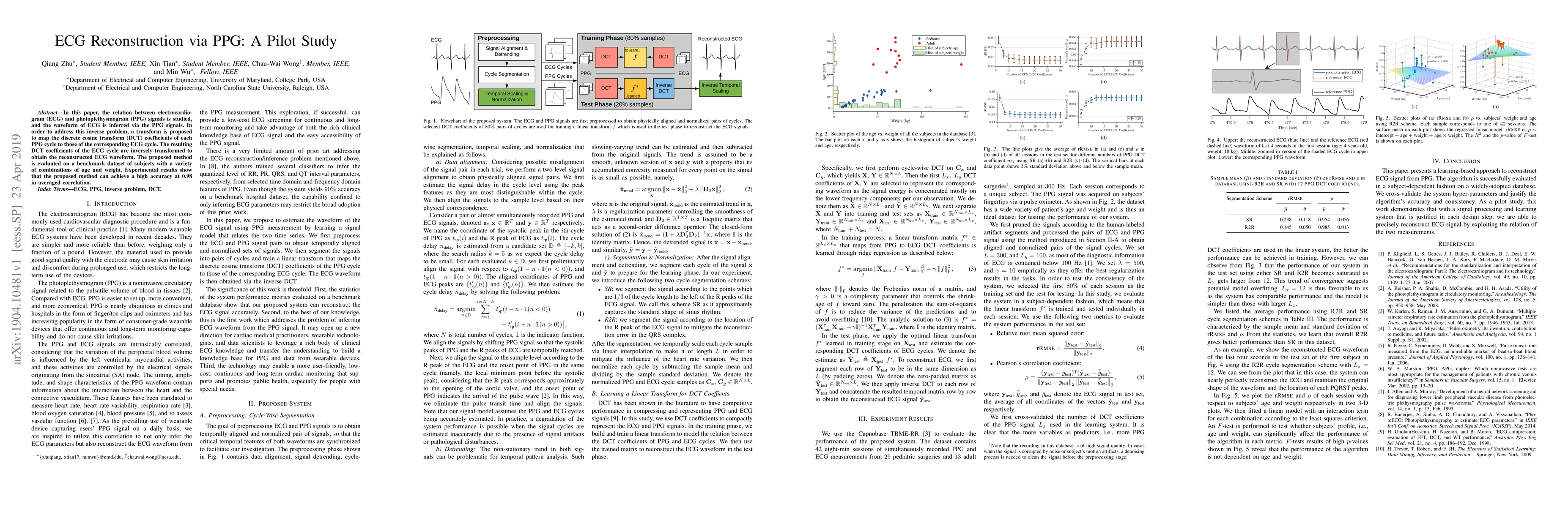 This paper proposes a method to reconstruct ECG waveforms using photoplethysmogram (PPG) signals by mapping their discrete cosine transform (DCT) coefficients. The method achieves high accuracy, with an averaged correlation of 0.98, as demonstrated on a diverse dataset.