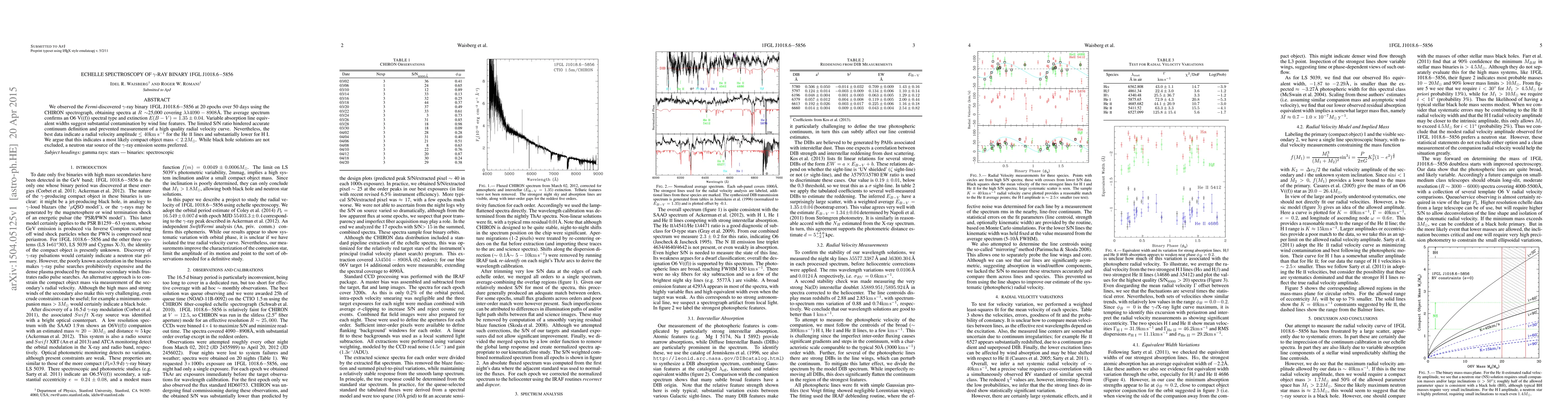 We observed the Fermi-discovered gamma-ray binary 1FGL J1018.6-5856 at 20 epochs over 50 days using the CHIRON spectrograph, obtaining spectra at R~25,000 covering 4090-8908A. The average spectrum confirms an O6 V((f)) spectral type and extinction E(B-V) = 1.35+/-0.04. Variable absorption line equivalent widths suggest substantial contamination by wind line features. The limited S/N ratio hindered accurate continuum definition and prevented measurement of a high quality radial velocity curve. Nevertheless, the best data indicate a radial velocity amplitude <40 km/s for the He II lines and substantially lower for H I. We argue that this indicates a most likely compact object mass <2.2Msun. While black hole solutions are not excluded, a neutron star source of the gamma-ray emission seems preferred.