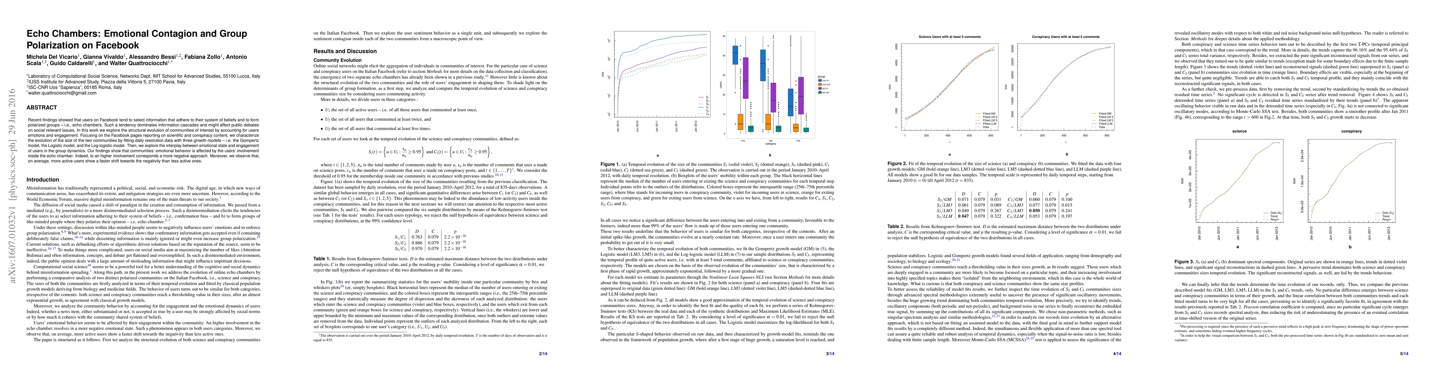 This paper investigates how emotional contagion and group polarization occur within Facebook echo chambers, particularly on pages discussing scientific and conspiracy topics. It finds that higher user involvement correlates with a more negative emotional state, with active users shifting towards negativity faster than less active ones.