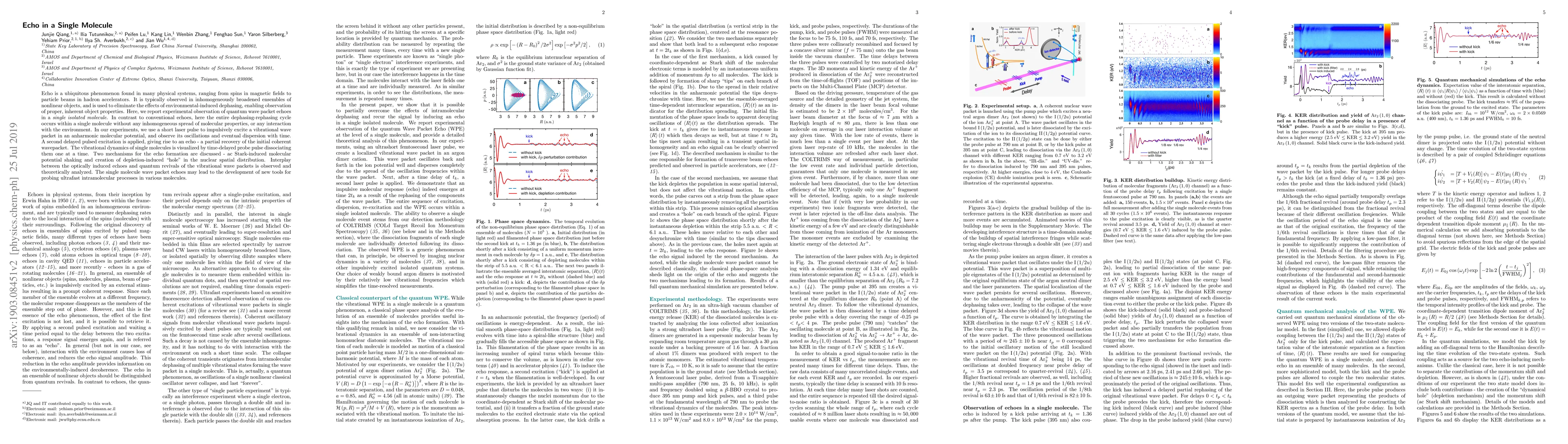 Echo is a ubiquitous phenomenon found in many physical systems, ranging from spins in magnetic fields to particle beams in hadron accelerators. It is typically observed in inhomogeneously broadened ensembles of nonlinear objects, and is used to eliminate the effects of environmental-induced dephasing, enabling observation of proper, inherent object properties. Here, we report experimental observation of quantum wave packet echoes in a single isolated molecule. In contrast to conventional echoes, here the entire dephasing-rephasing cycle occurs within a single molecule without any inhomogeneous spread of molecular properties, or any interaction with the environment. In our experiments, we use a short laser pulse to impulsively excite a vibrational wave packet in an anharmonic molecular potential, and observe its oscillations and eventual dispersion with time. A second delayed pulsed excitation is applied, giving rise to an echo: a partial recovery of the initial coherent wavepacket. The vibrational dynamics of single molecules is visualized by time-delayed probe pulse dissociating them one at a time. Two mechanisms for the echo formation are discussed: ac Stark-induced molecular potential shaking and creation of depletion-induced "hole" in the nuclear spatial distribution. Interplay between the optically induced echoes and quantum revivals of the vibrational wave packets is observed and theoretically analyzed. The single molecule wave packet echoes may lead to the development of new tools for probing ultrafast intramolecular processes in various molecules.