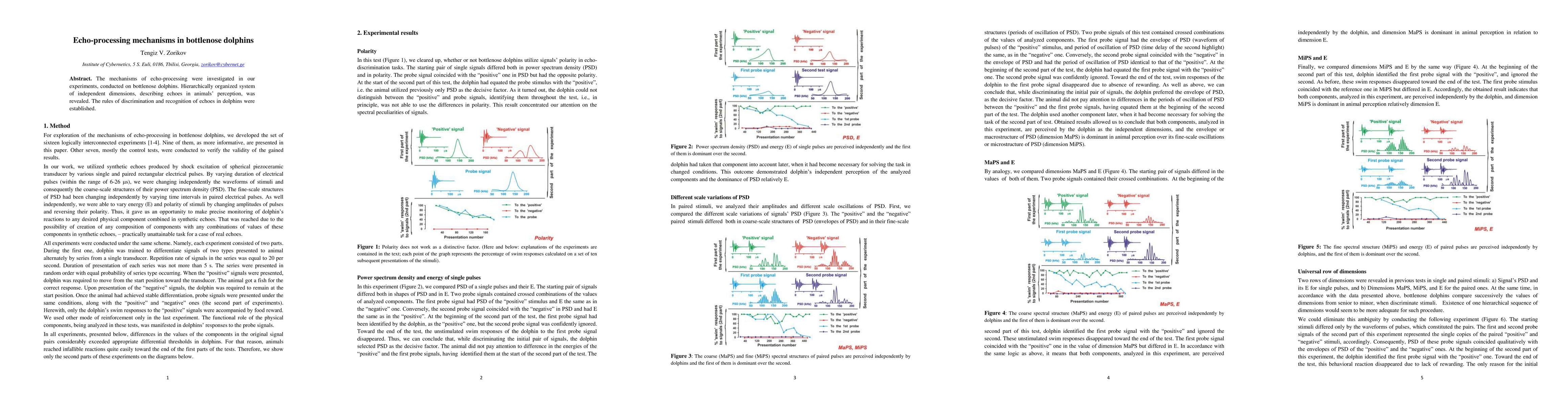 This study investigates the echo-processing mechanisms in bottlenose dolphins, revealing a hierarchically organized system for echo perception. The research establishes the rules governing echo discrimination and recognition in these marine mammals.