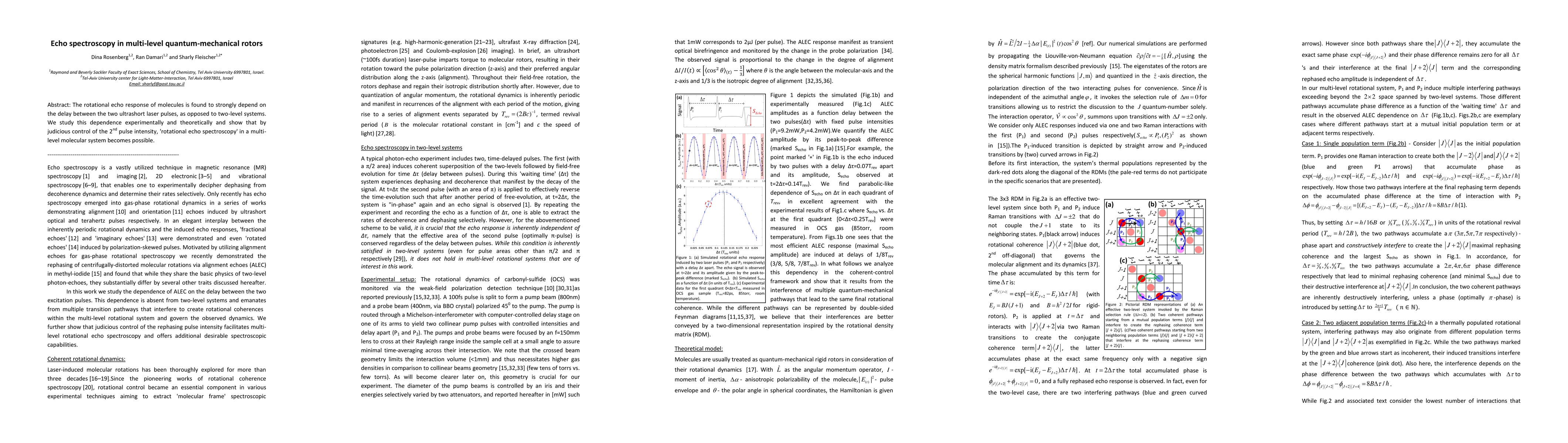 The rotational echo response of molecules is found to strongly depend on the delay between the two ultrashort laser pulses, as opposed to two-level systems. We study this dependence experimentally and theoretically and show that by judicious control of the 2nd pulse intensity, 'rotational echo spectroscopy' in a multi-level molecular system becomes possible.