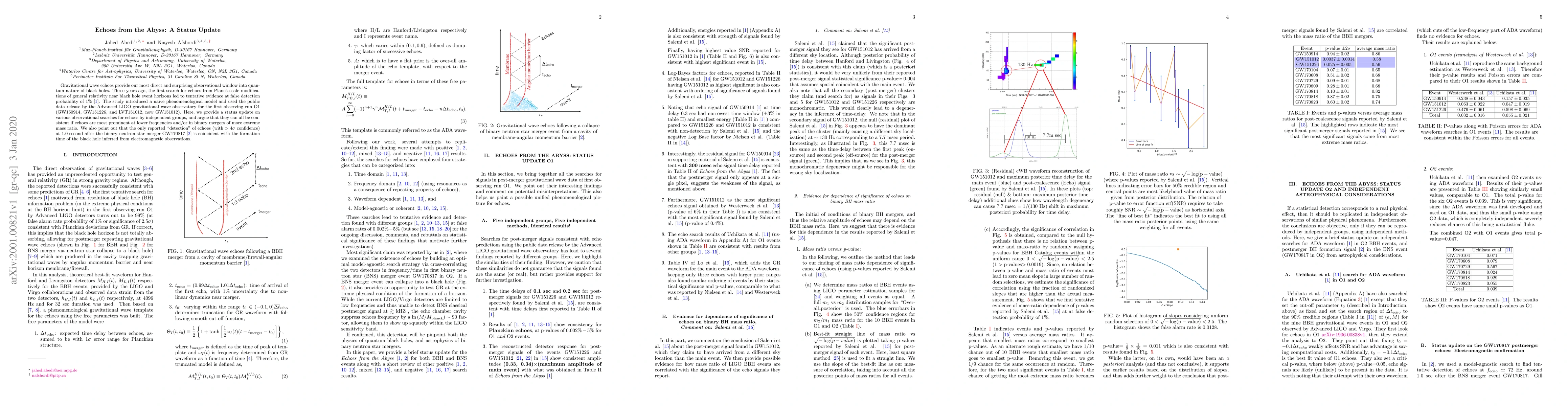 Gravitational wave echoes provide our most direct and surprising observational window into quantum nature of black holes. Three years ago, the first search for echoes from Planck-scale modifications of general relativity near black hole event horizons led to tentative evidence at false detection probability of 1\% arXiv:1612.00266 . The study introduced a naive phenomenological model and used the public data release by the Advanced LIGO gravitational wave observatory for the first observing run O1 (GW150914, GW151226, and LVT151012, now GW151012). Here, we provide a status update on various observational searches for echoes by independent groups, and argue that they can all be consistent if echoes are most prominent at lower frequencies and/or in binary mergers of more extreme mass ratio. We also point out that the only reported "detection" of echoes (with $>4\sigma$ confidence) at 1.0 second after the binary neutron star merger GW170817 arXiv:1803.10454 is coincident with the formation time of the black hole inferred from electromagnetic observations.