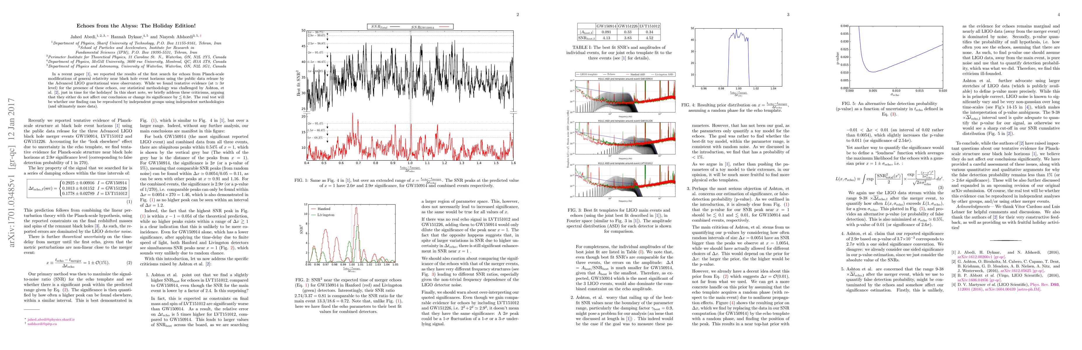 In a recent paper (arXiv:1612.00266), we reported the results of the first search for echoes from Planck-scale modifications of general relativity near black hole event horizons using the public data release by the Advanced LIGO gravitational wave observatory. While we found tentative evidence (at $\simeq 3 \sigma$ level) for the presence of these echoes, our statistical methodology was challenged by Ashton, et al. (arXiv:1612.05625), just in time for the holidays! In this short note, we briefly address these criticisms, arguing that they either do not affect our conclusion or change its significance by $\lesssim 0.3\sigma$. The real test will be whether our finding can be reproduced by independent groups using independent methodologies (and ultimately more data).