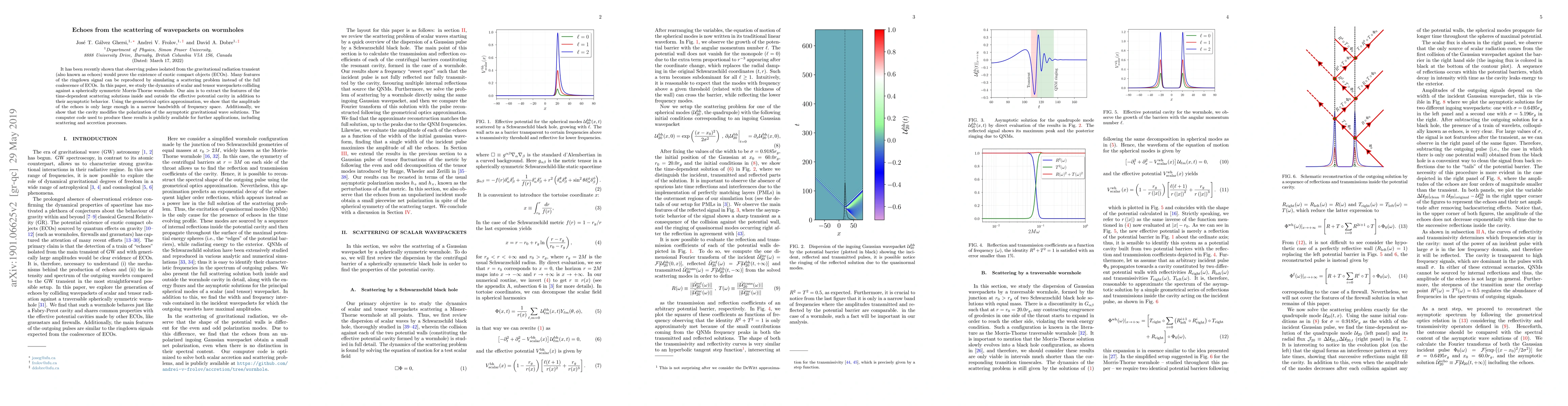 It has been recently shown that observing pulses isolated from the gravitational radiation transient (also known as echoes) would prove the existence of exotic compact objects (ECOs). Many features of the ringdown signal can be reproduced by simulating a scattering problem instead of the full coalescence of ECOs. In this paper, we study the dynamics of scalar and tensor wavepackets colliding against a spherically symmetric Morris-Thorne wormhole. Our aim is to extract the features of the time-dependent scattering solutions inside and outside the effective potential cavity in addition to their asymptotic behavior. Using the geometrical optics approximation, we show that the amplitude of the echoes is only large enough in a narrow bandwidth of frequency space. Additionally, we show that the cavity modifies the polarization of the asymptotic gravitational wave solutions. The computer code used to produce these results is publicly available for further applications, including scattering and accretion processes.