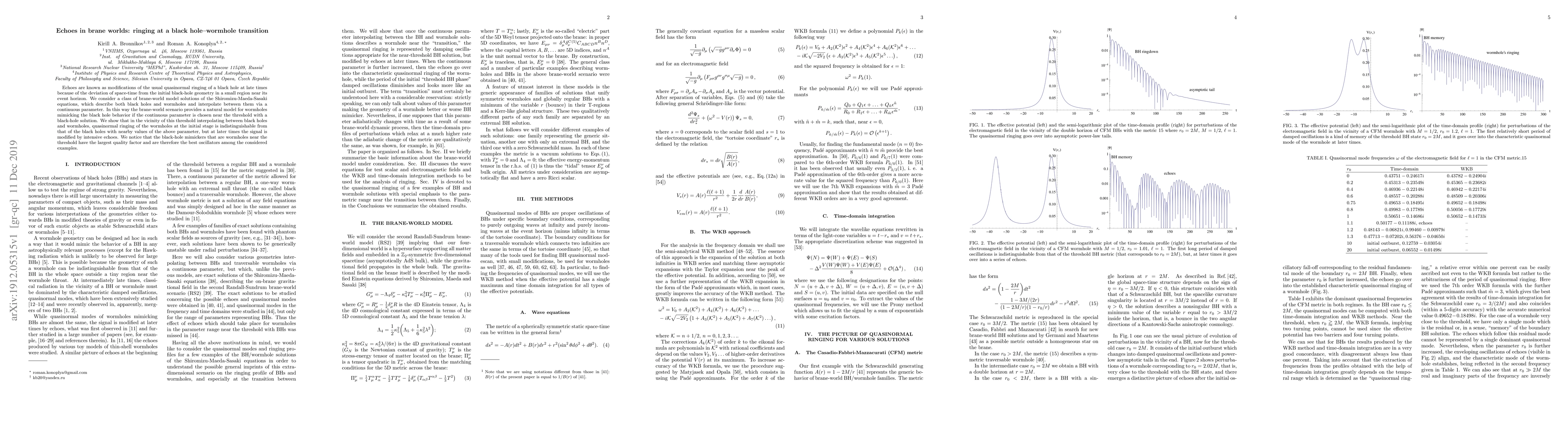 This paper investigates the quasinormal ringing behavior of brane-world models that interpolate between black holes and wormholes. It finds that near the transition threshold, wormholes exhibit quasinormal ringing similar to black holes, but later emit intensive echoes, indicating a significant deviation from the initial geometry.