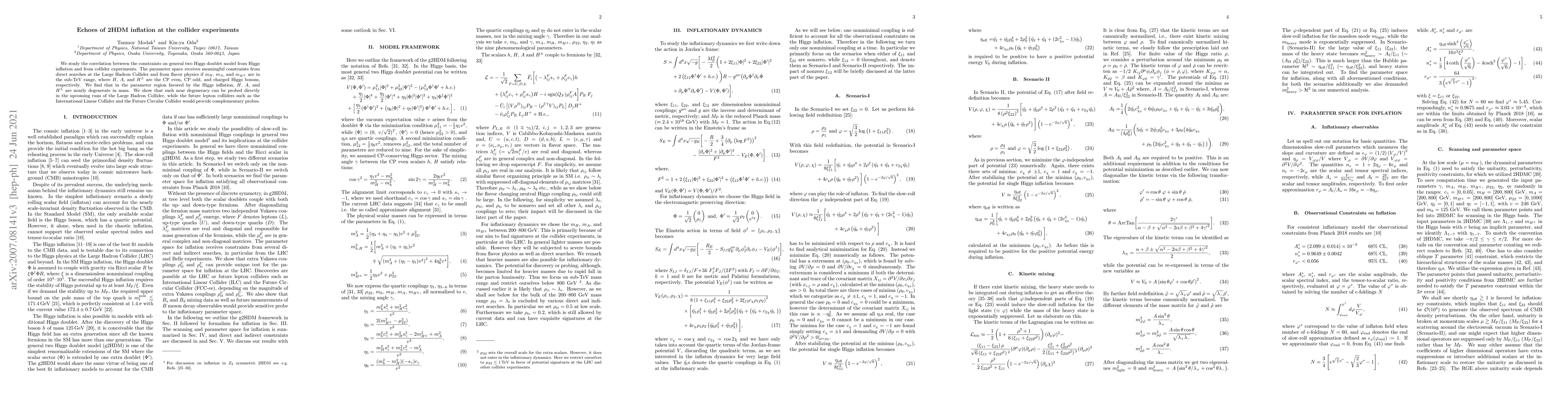 We study the correlation between the constraints on general two Higgs doublet model from Higgs inflation and from collider experiments. The parameter space receives meaningful constraints from direct searches at the Large Hadron Collider and from flavor physics if $m_H$, $m_A$, and $m_{H^\pm}$ are in the sub-TeV range, where $H$, $A$, and $H^\pm$ are the CP even, CP odd, and charged Higgs bosons, respectively. We find that in the parameter region favored by the Higgs inflation, $H$, $A$, and $H^\pm$ are nearly degenerate in mass.We show that such near degeneracy can be probed directly in the upcoming runs of the Large Hadron Collider, while the future lepton colliders such as the International Linear Collider and the Future Circular Collider would provide complementary probes.