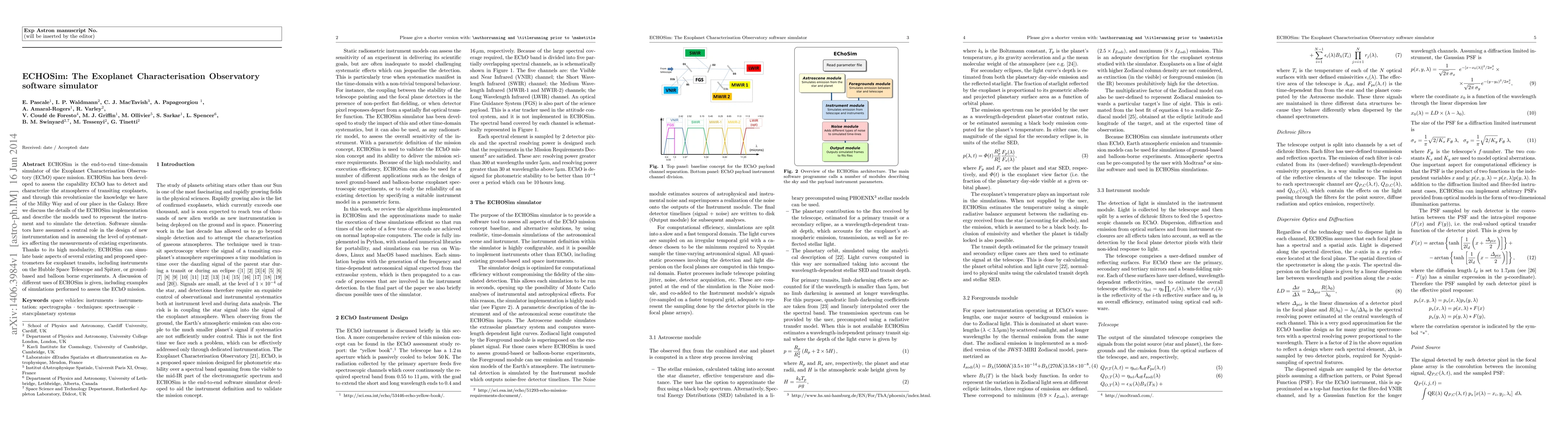 EChOSim is a comprehensive software simulator for the Exoplanet Characterisation Observatory (EChO) mission, designed to evaluate its ability to detect and characterize exoplanet atmospheres. It offers high modularity to simulate various existing and proposed spectrometers, aiding in the assessment of systematics and the design of new instruments.