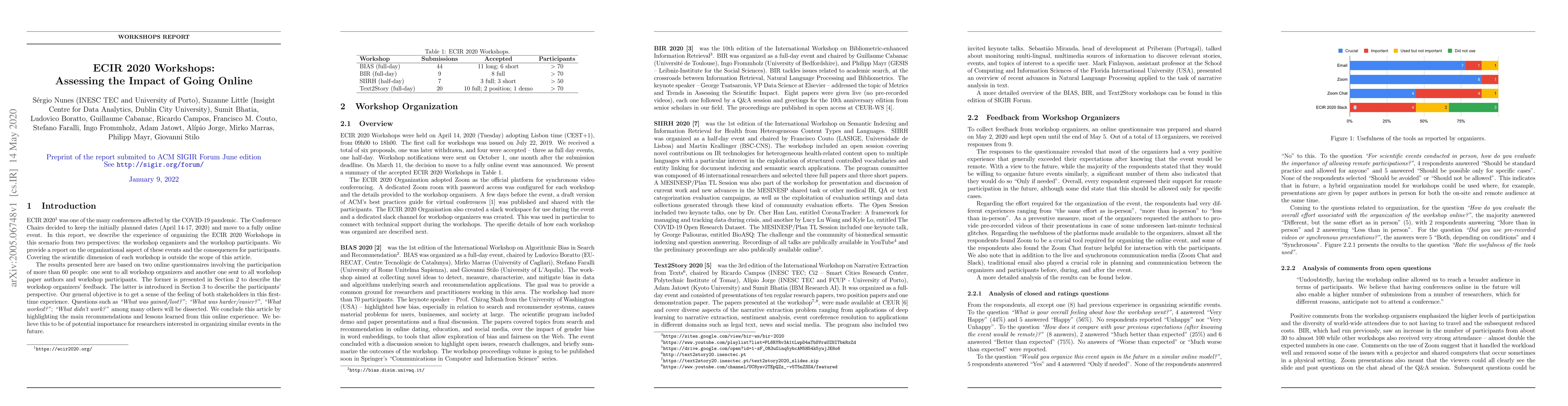 This paper reports on the experience of organizing ECIR 2020 Workshops in an online format due to COVID-19, highlighting organizational challenges and participant consequences. The report provides insights into the logistics and impact of hosting events online during a pandemic.