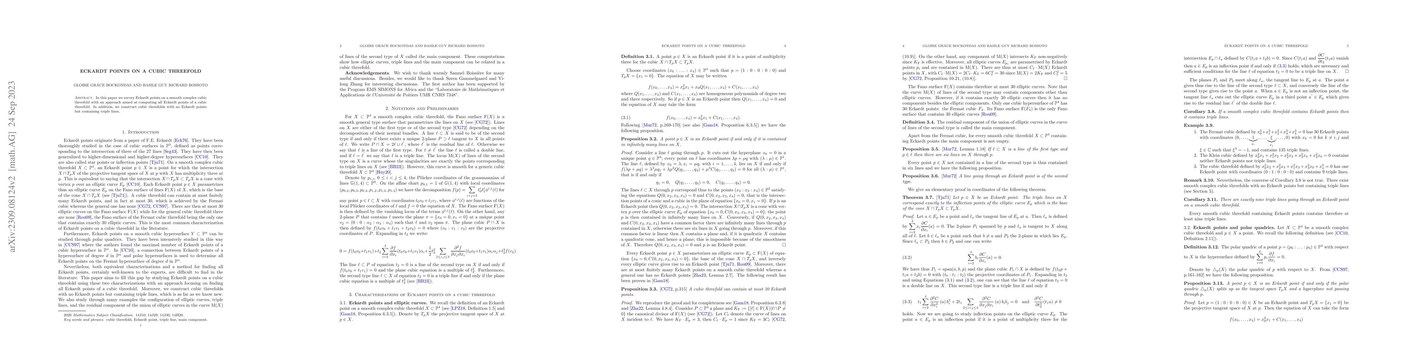 Summary: This paper surveys Eckardt points on smooth complex cubic threefolds, focusing on methods to compute them, and also constructs cubic threefolds with no Eckardt points that still contain triple lines.