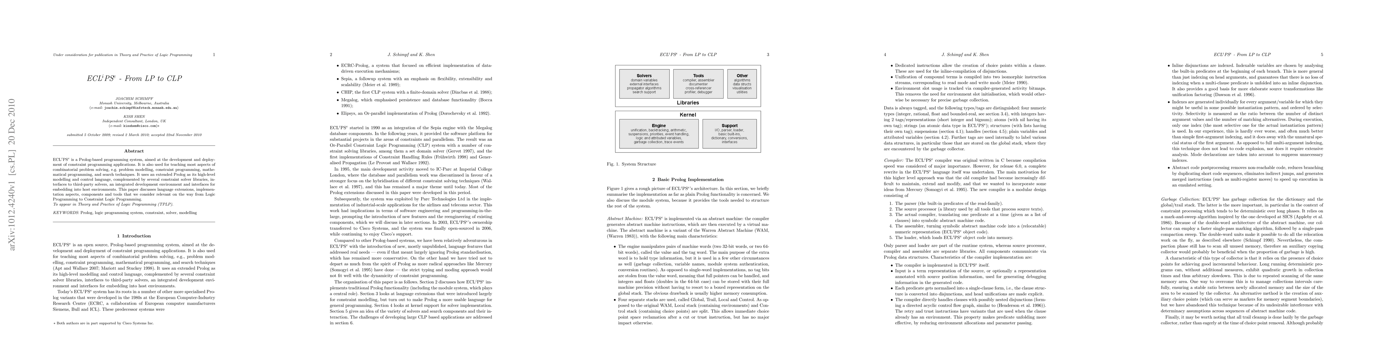 ECLiPSe is a Prolog-based programming system, aimed at the development and deployment of constraint programming applications. It is also used for teaching most aspects of combinatorial problem solving, e.g. problem modelling, constraint programming, mathematical programming, and search techniques. It uses an extended Prolog as its high-level modelling and control language, complemented by several constraint solver libraries, interfaces to third-party solvers, an integrated development environment and interfaces for embedding into host environments. This paper discusses language extensions, implementation aspects, components and tools that we consider relevant on the way from Logic Programming to Constraint Logic Programming.