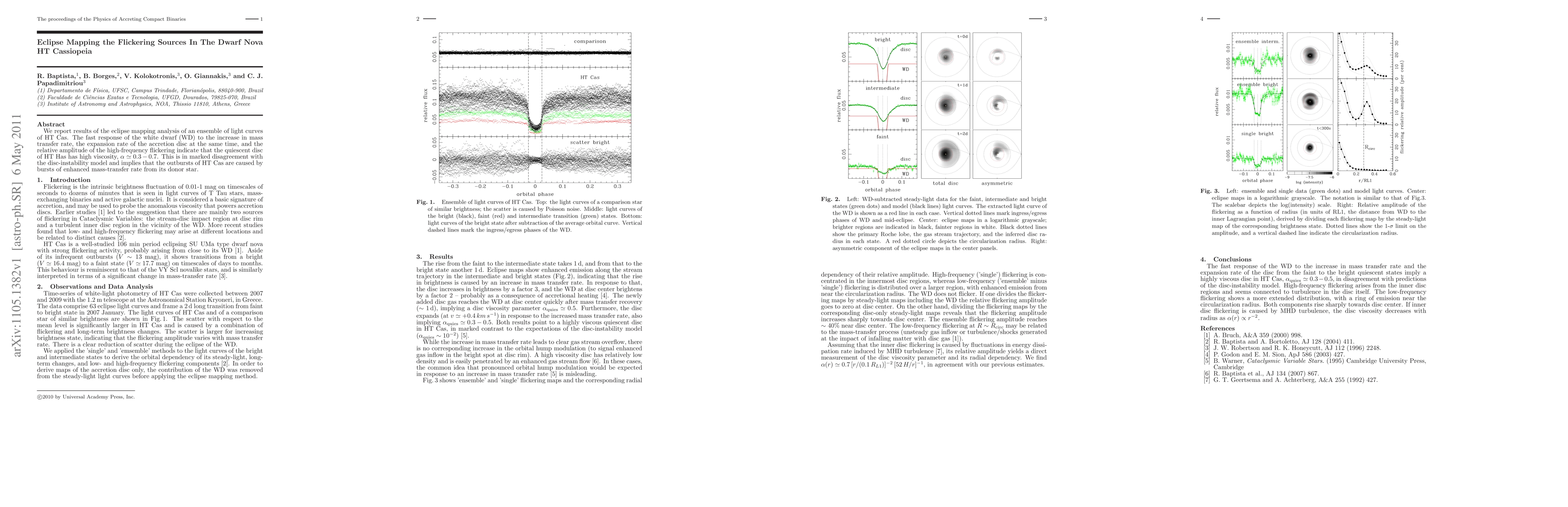 We report results of the eclipse mapping analysis of an ensemble of light curves of HT Cas. The fast response of the white dwarf to the increase in mass transfer rate, the expansion rate of the accretion disc at the same time, and the relative amplitude of the high-frequency flickering indicate that the quiescent disc of HT Has has high viscosity, alpha ~ 0.3-0.7. This is in marked disagreement with the disc-instability model and implies that the outbursts of HT Cas are caused by bursts of enhanced mass-transfer rate from its donor star.