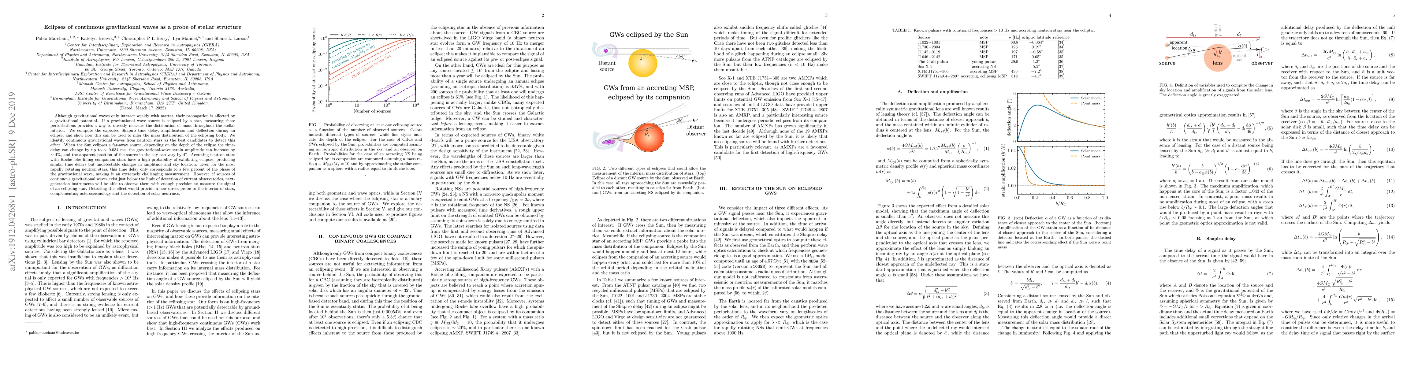This paper explores the use of gravitational wave eclipses by stars to probe stellar structure. It calculates the Shapiro time delay, amplification, and deflection during such eclipses, demonstrating that these perturbations can reveal the mass distribution within the star's interior. Continuous gravitational waves from neutron stars are identified as the most promising candidates for detecting these effects, with next-generation instruments potentially observing them with sufficient precision.