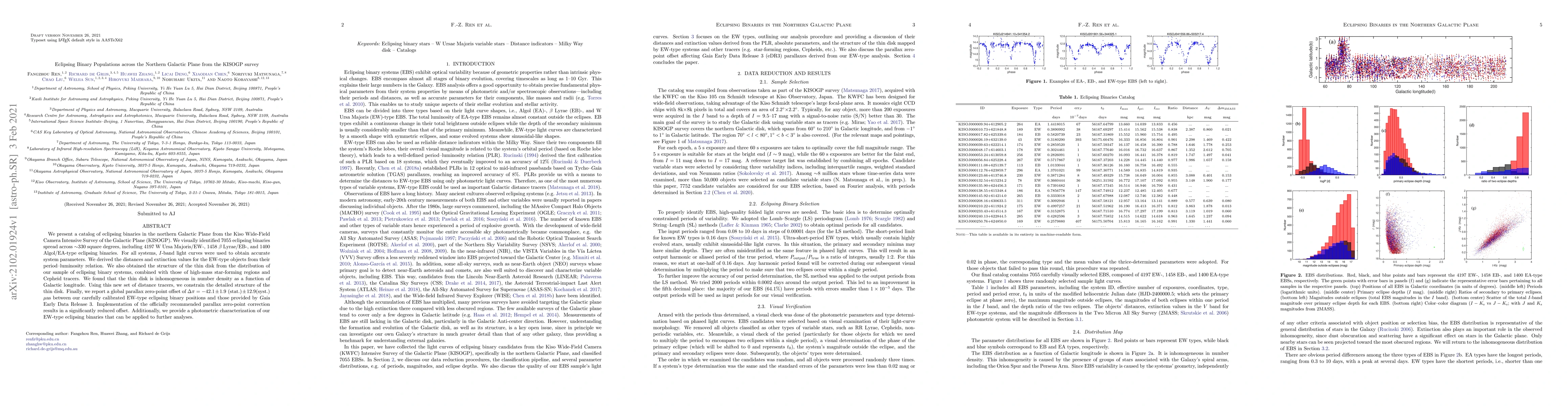This paper catalogs 7055 eclipsing binaries identified from the KISOGP survey, providing detailed parameters and distances for EW-type systems. It reveals an inhomogeneous thin disk structure and reports a parallax zero-point offset between KISOGP and Gaia data, which is reduced with the recommended correction.