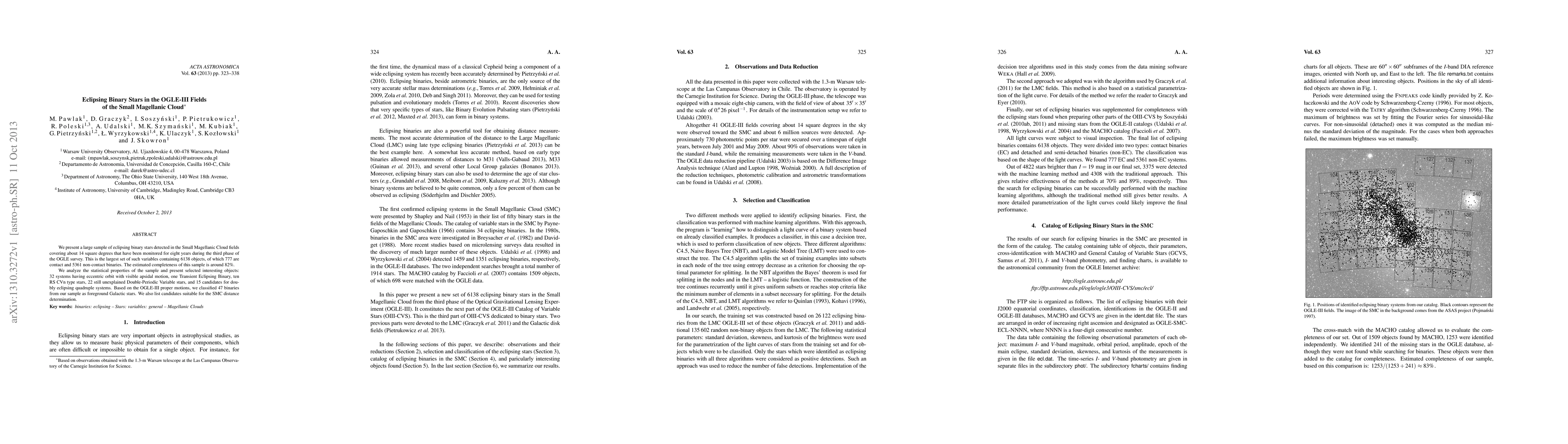 This study presents a comprehensive catalog of 6138 eclipsing binary stars in the Small Magellanic Cloud, identified over eight years of monitoring by the OGLE-III survey. The sample includes 777 contact binaries and 5361 non-contact binaries, with an estimated completeness of about 82%. The research highlights interesting objects such as eccentric binaries, transient systems, and candidates for distance determination.