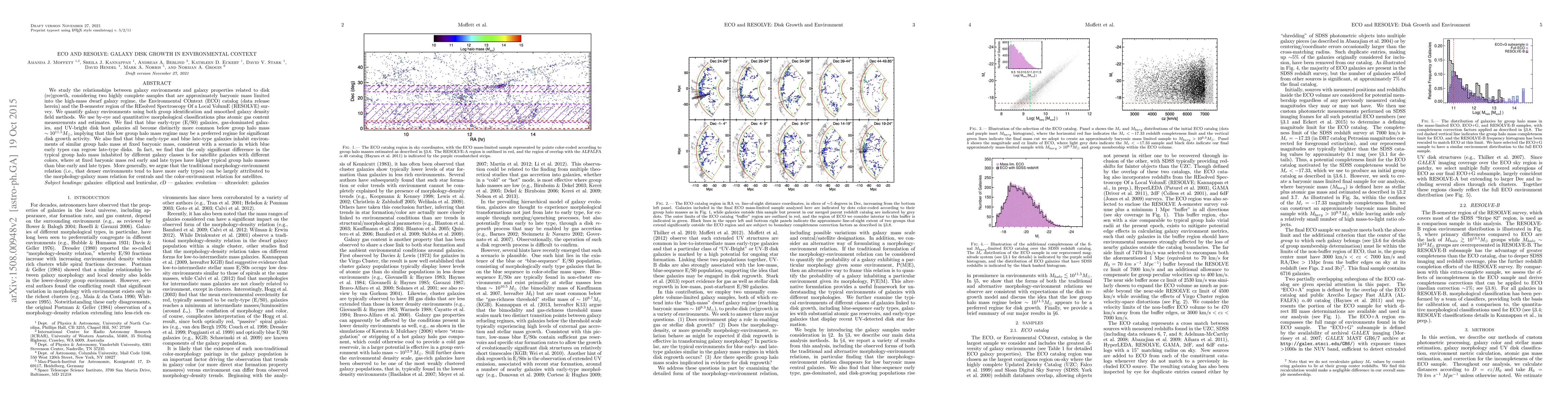 This study, using the ECO and RESOLVE surveys, finds that low-mass group haloes (~10^11.5 Msun) favor significant disk growth in galaxies, with blue early-types, gas-rich galaxies, and UV-bright disk hosts more common therein. The research suggests that the traditional morphology-environment link can be primarily due to the correlation between morphology/color and galaxy mass for centrals, and color and environment for satellites.