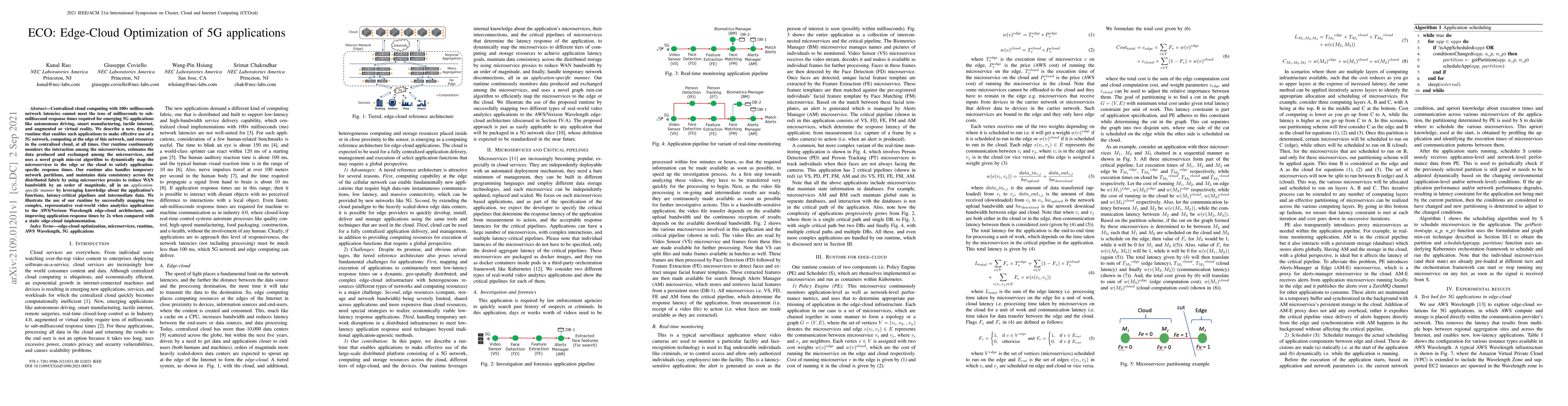 This research paper introduces an edge-cloud optimization system called ECO that enables 5G applications to achieve response times of tens of milliseconds to sub-milliseconds by dynamically allocating resources between the edge and centralized cloud.