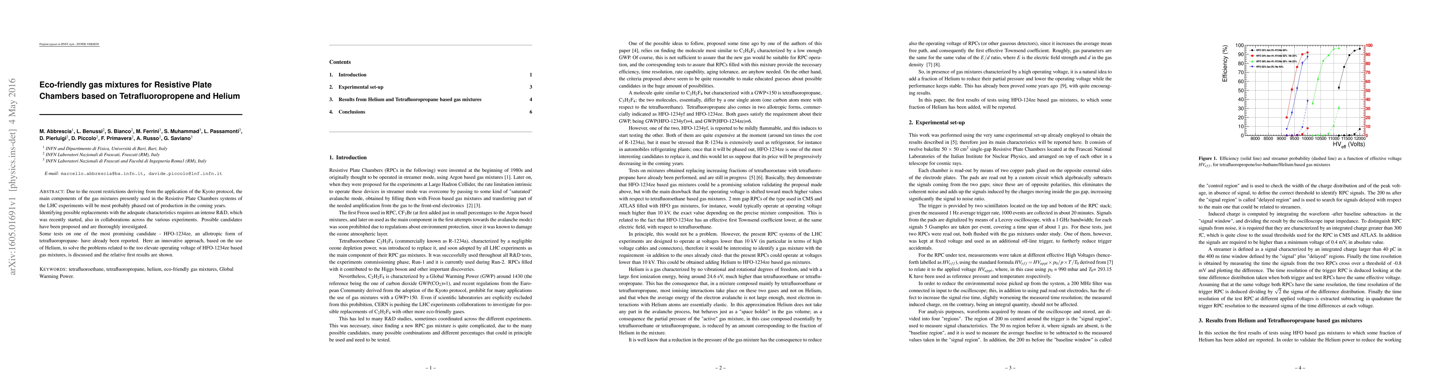 This paper investigates eco-friendly gas mixtures for Resistive Plate Chambers, focusing on replacing current components due to Kyoto Protocol restrictions. An innovative approach combining tetrafluoropropene with helium is proposed to address the high operating voltage issue of HFO-1234ze, with initial results presented.