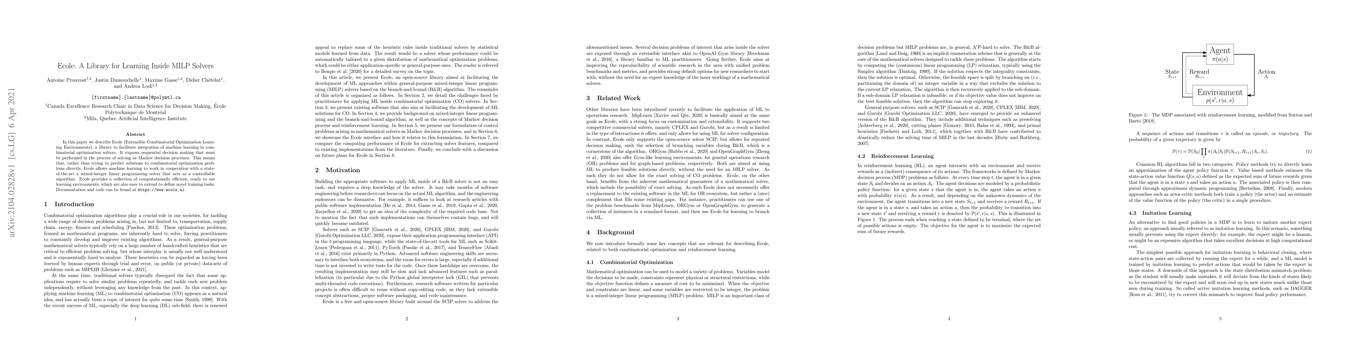 Ecole is a library that enables machine learning to collaborate with mixed-integer linear programming solvers, allowing for more efficient optimization solutions. It provides pre-built learning environments and easy extension options.