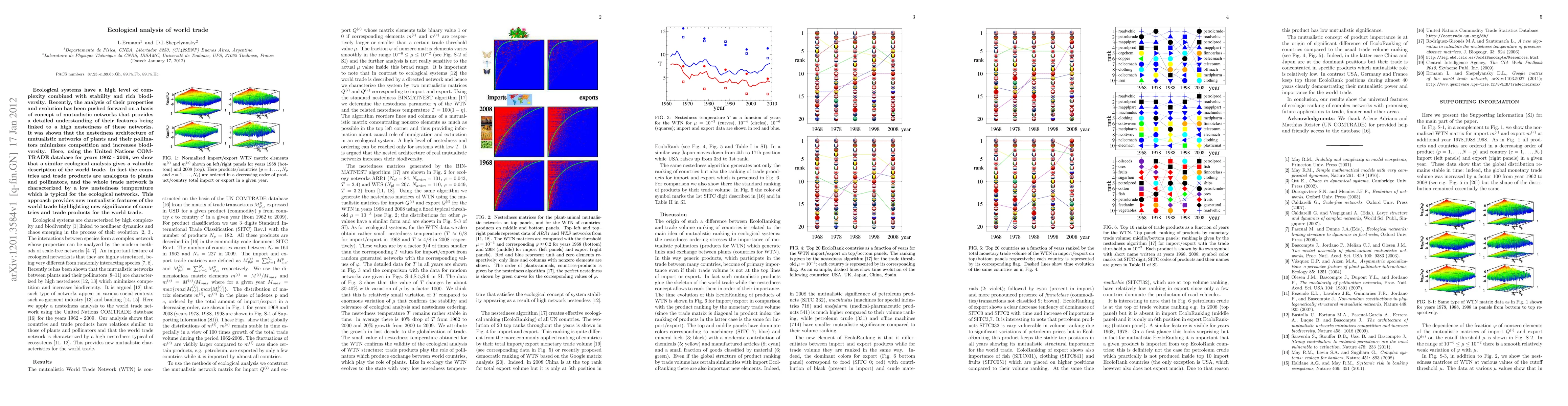 Ecological systems have a high level of complexity combined with stability and rich biodiversity. Recently, the analysis of their properties and evolution has been pushed forward on a basis of concept of mutualistic networks that provides a detailed understanding of their features being linked to a high nestedness of these networks. It was shown that the nestedness architecture of mutualistic networks of plants and their pollinators minimizes competition and increases biodiversity. Here, using the United Nations COMTRADE database for years 1962 - 2009, we show that a similar ecological analysis gives a valuable description of the world trade. In fact the countries and trade products are analogous to plants and pollinators, and the whole trade network is characterized by a low nestedness temperature which is typical for the ecological networks. This approach provides new mutualistic features of the world trade highlighting new significance of countries and trade products for the world trade.