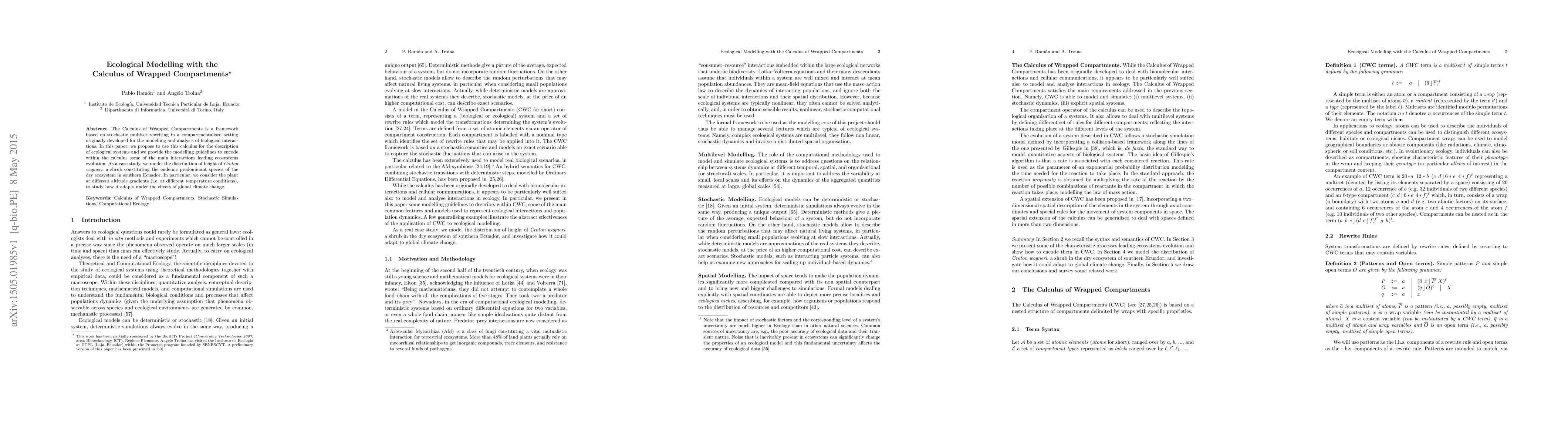 The Calculus of Wrapped Compartments is a framework based on stochastic multiset rewriting in a compartmentalised setting originally developed for the modelling and analysis of biological interactions. In this paper, we propose to use this calculus for the description of ecological systems and we provide the modelling guidelines to encode within the calculus some of the main interactions leading ecosystems evolution. As a case study, we model the distribution of height of Croton wagneri, a shrub constituting the endemic predominant species of the dry ecosystem in southern Ecuador. In particular, we consider the plant at different altitude gradients (i.e. at different temperature conditions), to study how it adapts under the effects of global climate change.