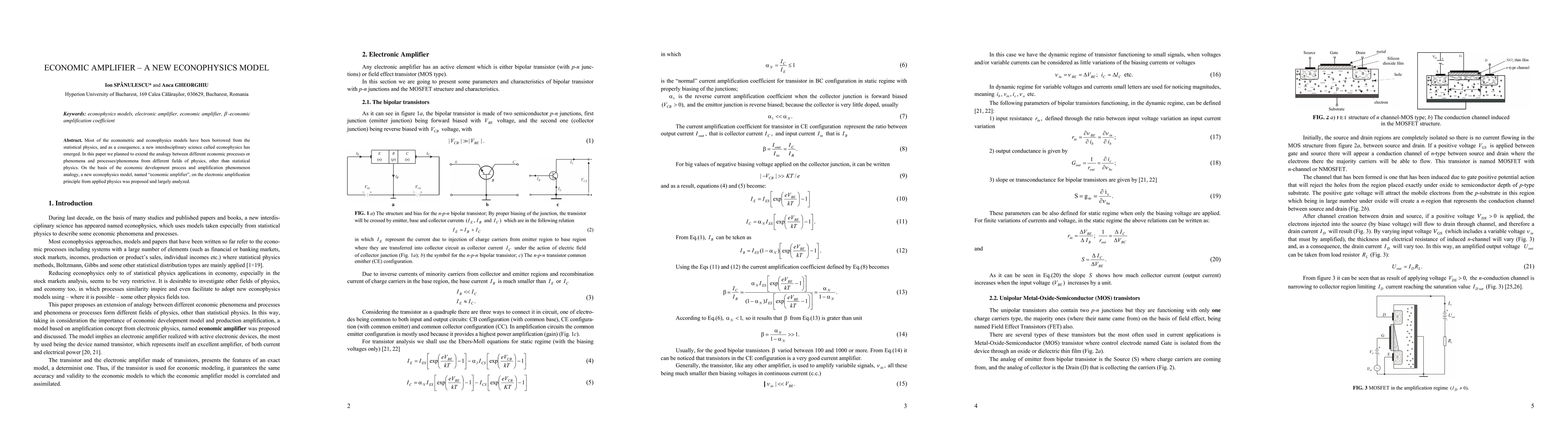 Most of the econometric and econophysics models have been borrowed from the statistical physics, and as a cosequence, a new interdisciplinary science called econophysics has emerged. In this paper we planned to extend the analogy between different economic processes or phenomena and processes and phenomena from different fields of physics, other than statistical physics. On the basis of the economic development process and amplification phenomenon analogy, a new econophysics model, named economic amplifier, on the electronic amplification principle from applied physics was proposed und largely analyzed.