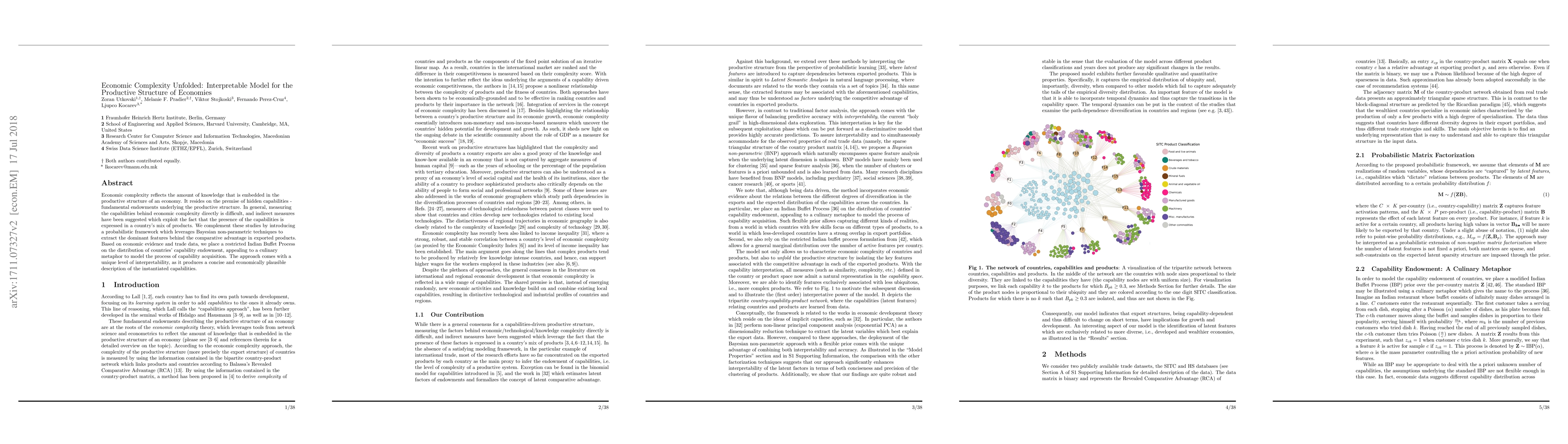 This paper introduces a probabilistic framework using Bayesian non-parametric techniques to measure economic complexity through a country's mix of exported products. It employs a restricted Indian Buffet Process to model capability acquisition, providing a clear and interpretable representation of the underlying productive structure.