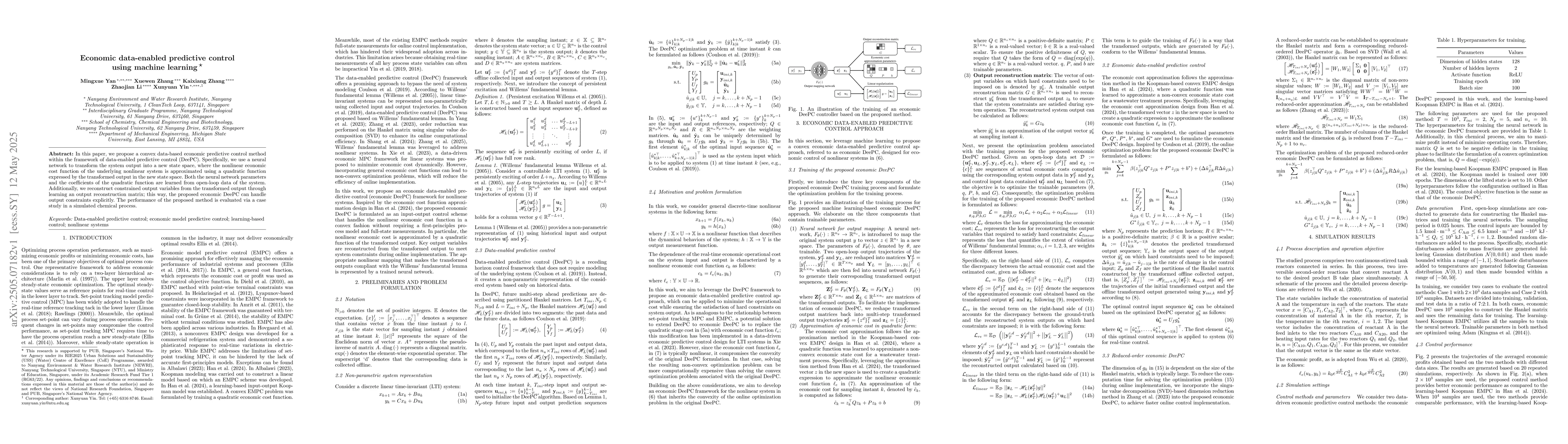 The research proposes a convex data-based economic predictive control method called DeePC, utilizing a neural network to transform system output into a new state space. It approximates the nonlinear economic cost function using a quadratic function in the new space, with both neural network parameters and quadratic coefficients learned from open-loop system data.
