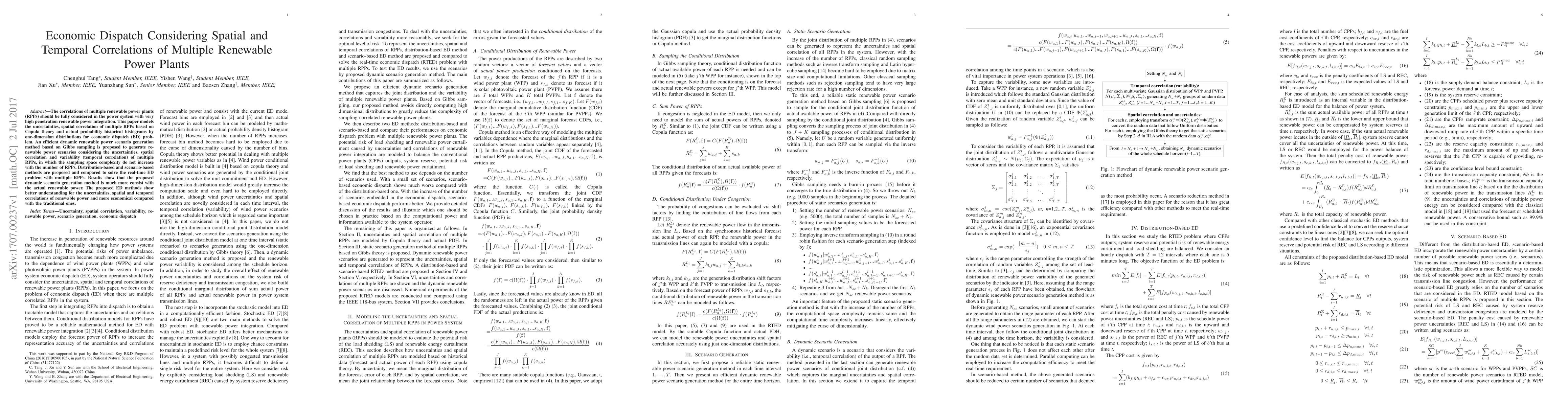 This paper proposes an economic dispatch method that considers the spatial and temporal correlations of multiple renewable power plants, using Copula theory and Gibbs sampling. It introduces efficient dynamic scenario generation to better reflect real-time renewable power uncertainties, demonstrating improved economic dispatch performance compared to traditional methods.