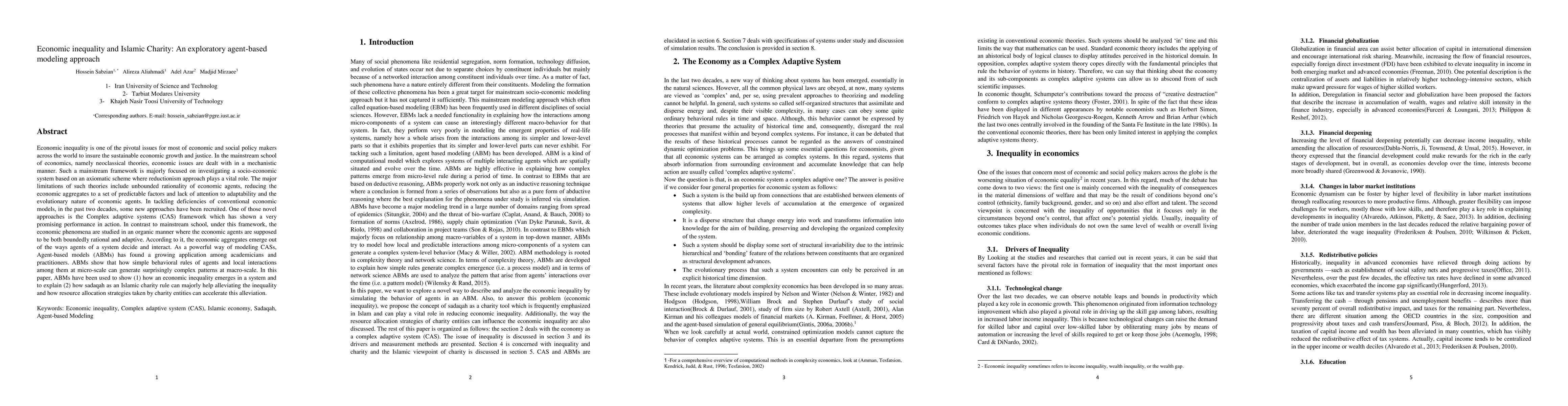 This paper employs agent-based modeling to explore how economic inequality emerges and how Islamic charity (sadaqah) can mitigate it. It contrasts traditional neoclassical economic models with the complex adaptive systems framework, demonstrating how local interactions among boundedly rational agents can generate macro-scale economic patterns.