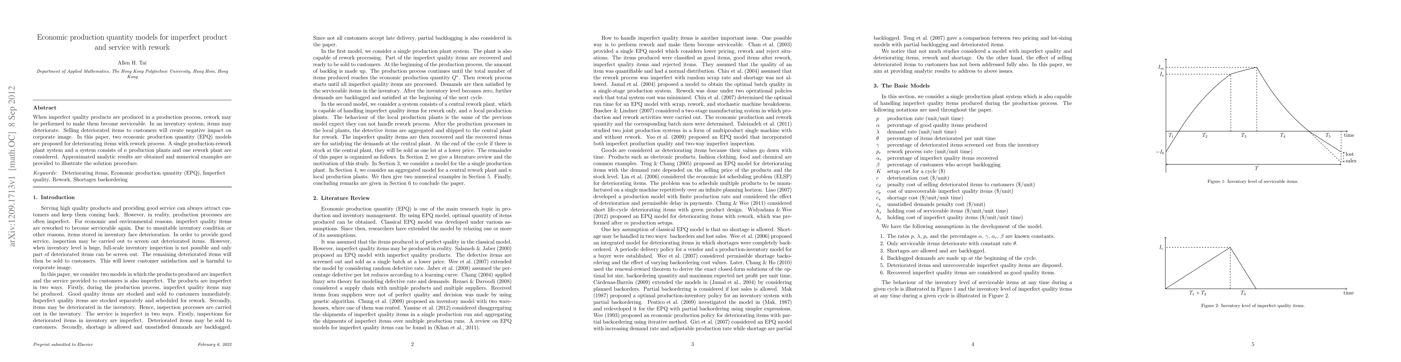 When imperfect quality products are produced in a production process, rework may be performed to make them become serviceable. In an inventory system, items may deteriorate. Selling deteriorated items to customers will create negative impact on corporate image. In this paper, two economic production quantity (EPQ) models are proposed for deteriorating items with rework process. A single production-rework plant system and a system consists of $n$ production plants and one rework plant are considered. Approximated analytic results are obtained and numerical examples are provided to illustrate the solution procedure.