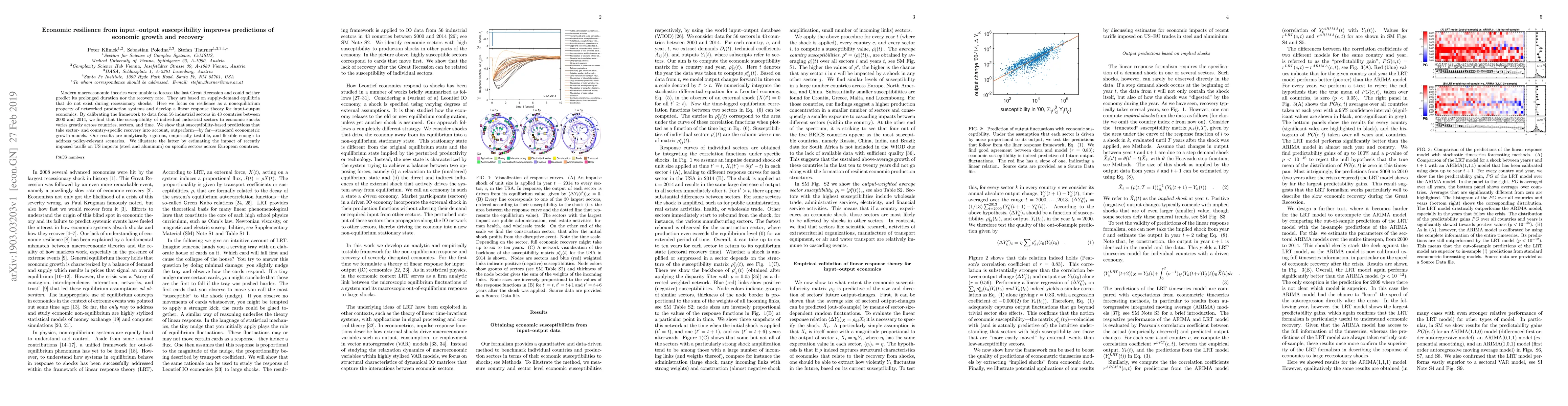 This paper develops a linear response theory for input-output economics to predict economic growth and recovery, showing that susceptibility-based models outperform traditional econometric models. The study finds significant variation in sector- and country-specific resilience, providing a flexible framework for policy-relevant economic scenarios.