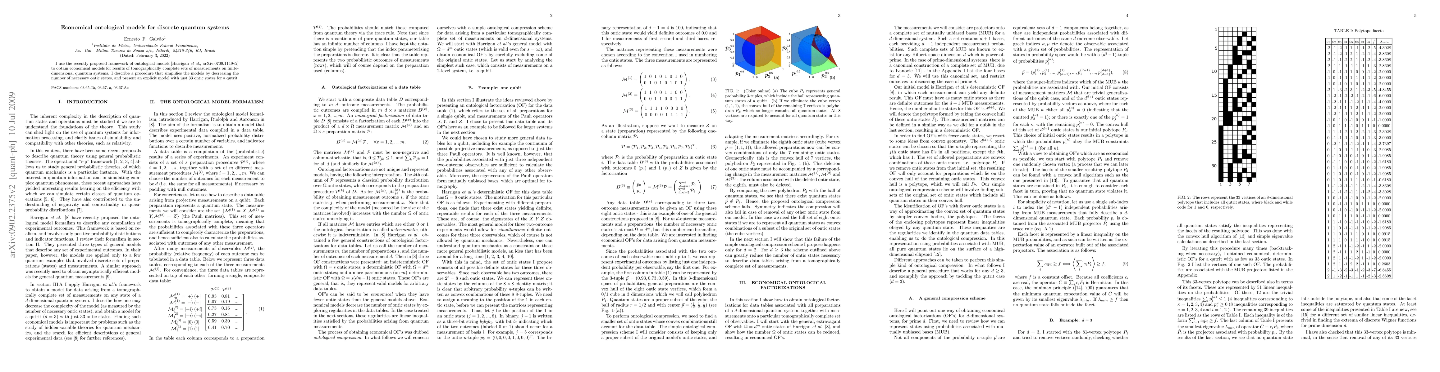 I use the recently proposed framework of ontological models [Harrigan et al., arXiv:0709.1149v2] to obtain economical models for results of tomographically complete sets of measurements on finite-dimensional quantum systems. I describe a procedure that simplifies the models by decreasing the number of necessary ontic states, and present an explicit model with just 33 ontic states for a qutrit.