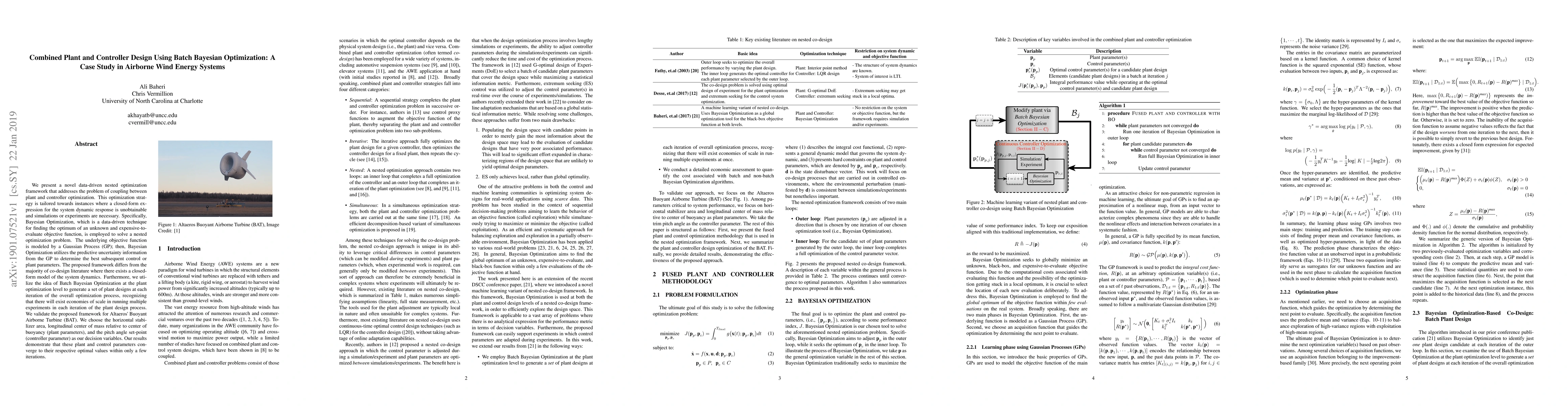 We present a novel data-driven nested optimization framework that addresses the problem of coupling between plant and controller optimization. This optimization strategy is tailored towards instances where a closed-form expression for the system dynamic response is unobtainable and simulations or experiments are necessary. Specifically, Bayesian Optimization, which is a data-driven technique for finding the optimum of an unknown and expensive-to-evaluate objective function, is employed to solve a nested optimization problem. The underlying objective function is modeled by a Gaussian Process (GP); then, Bayesian Optimization utilizes the predictive uncertainty information from the GP to determine the best subsequent control or plant parameters. The proposed framework differs from the majority of co-design literature where there exists a closed-form model of the system dynamics. Furthermore, we utilize the idea of Batch Bayesian Optimization at the plant optimization level to generate a set of plant designs at each iteration of the overall optimization process, recognizing that there will exist economies of scale in running multiple experiments in each iteration of the plant design process. We validate the proposed framework for a Buoyant Airborne Turbine (BAT). We choose the horizontal stabilizer area, longitudinal center of mass relative to center of buoyancy (plant parameters), and the pitch angle set-point (controller parameter) as our decision variables. Our results demonstrate that these plant and control parameters converge to their respective optimal values within only a few iterations.