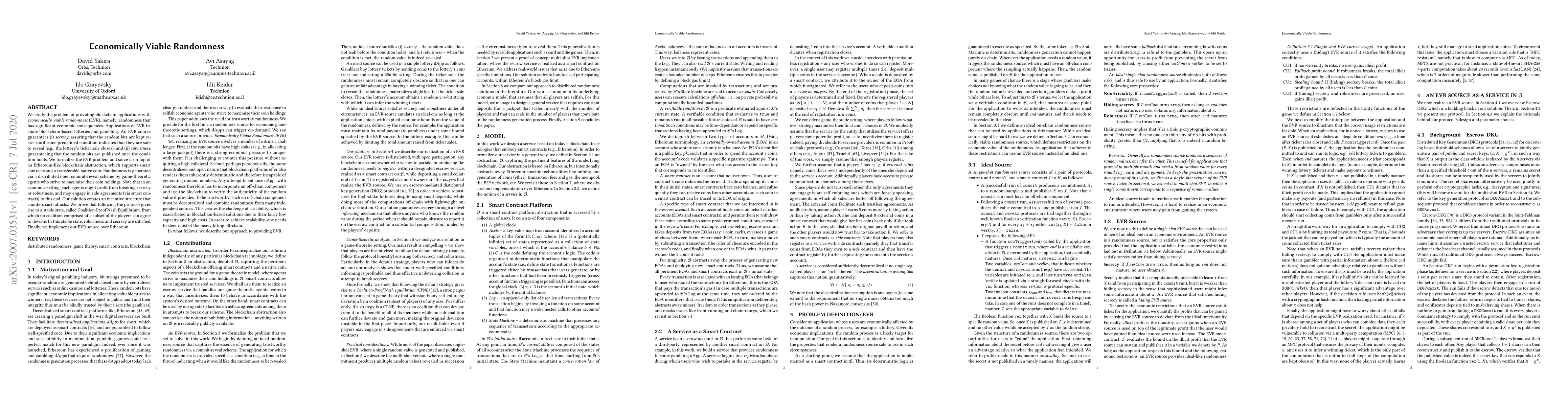 We study the problem of providing blockchain applications with \emph{economically viable randomness} (EVR), namely, randomness that has significant economic consequences. Applications of EVR include blockchain-based lotteries and gambling. An EVR source guarantees (i) secrecy, assuring that the random bits are kept secret until some predefined condition indicates that they are safe to reveal (e.g., the lottery's ticket sale closes), and (ii) robustness, guaranteeing that the random bits are published once the condition holds. We formalize the EVR problem and solve it on top of an Ethereum-like blockchain abstraction, which supports smart contracts and a transferable native coin. Randomness is generated via a distributed open commit-reveal scheme by game-theoretic agents who strive to maximize their coin holdings. Note that in an economic setting, such agents might profit from breaking secrecy or robustness, and may engage in side agreements (via smart contracts) to this end. Our solution creates an incentive structure that counters such attacks. We prove that following the protocol gives rise to a stable state, called Coalition-Proof Nash Equilibrium, from which no coalition comprised of a subset of the players can agree to deviate. In this stable state, robustness and secrecy are satisfied. Finally, we implement our EVR source over Ethereum.