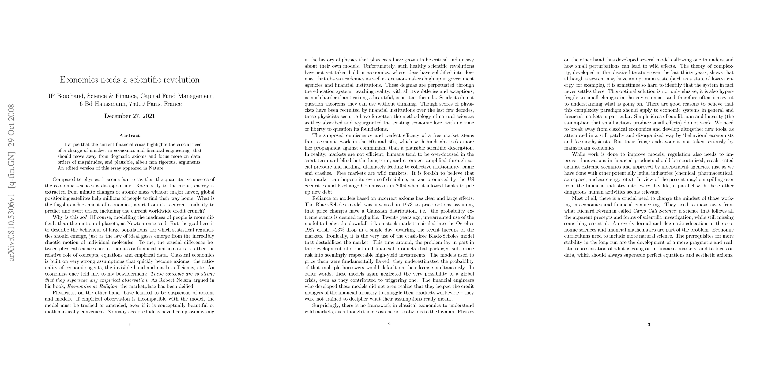 Summary: The paper calls for a paradigm shift in economics and financial engineering, advocating for a move away from rigid dogmas towards more data-driven, magnitude-focused, and plausible, albeit less rigorous, approaches to address the ongoing financial crisis.
