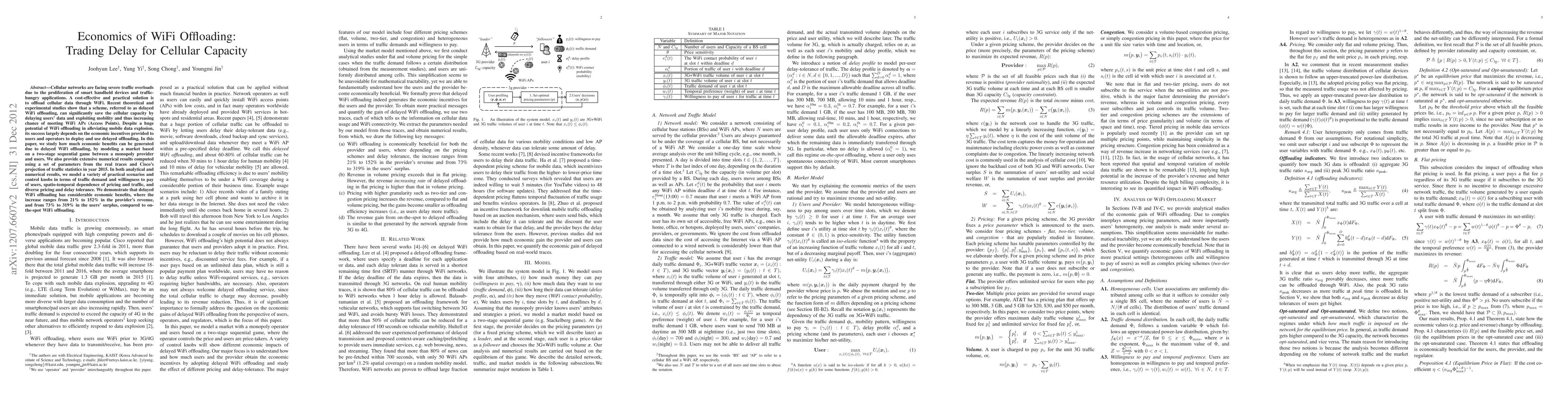This paper explores the economic benefits of delayed WiFi offloading to alleviate cellular network congestion, modeling a market scenario involving a monopoly provider and users. The study finds significant economic benefits, with provider revenue increasing by 21% to 152% and user surplus by 73% to 319% compared to immediate WiFi offloading.