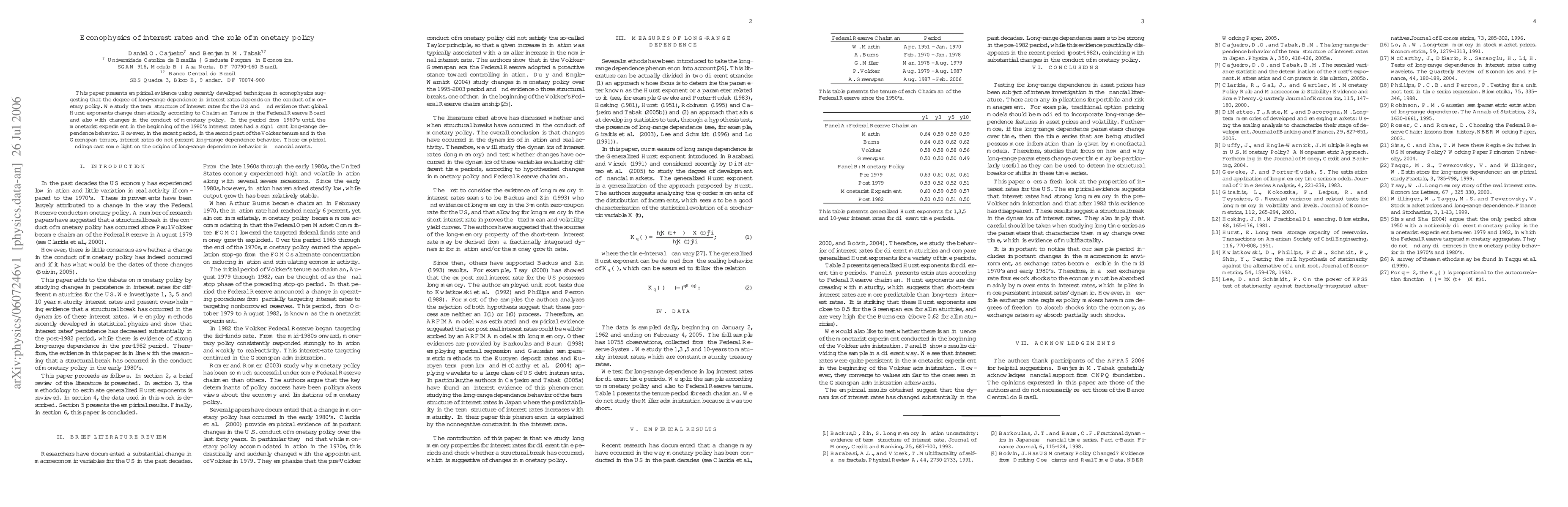 This paper presents empirical evidence using recently developed techniques in econophysics suggesting that the degree of long-range dependence in interest rates depends on the conduct of monetary policy. We study the term structure of interest rates for the US and find evidence that global Hurst exponents change dramatically according to Chairman Tenure in the Federal Reserve Board and also with changes in the conduct of monetary policy. In the period from 1960's until the monetarist experiment in the beginning of the 1980's interest rates had a significant long-range dependence behavior. However, in the recent period, in the second part of the Volcker tenure and in the Greenspan tenure, interest rates do not present long-range dependence behavior. These empirical findings cast some light on the origins of long-range dependence behavior in financial assets.