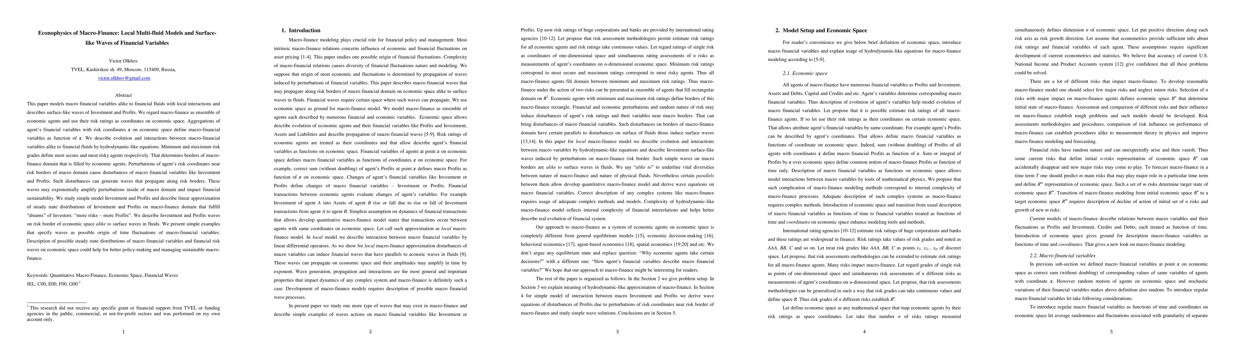 This paper models macro finance variables as financial fluids with local interactions, describing surface-like waves of Investment and Profits that can exponentially amplify and impact financial sustainability.