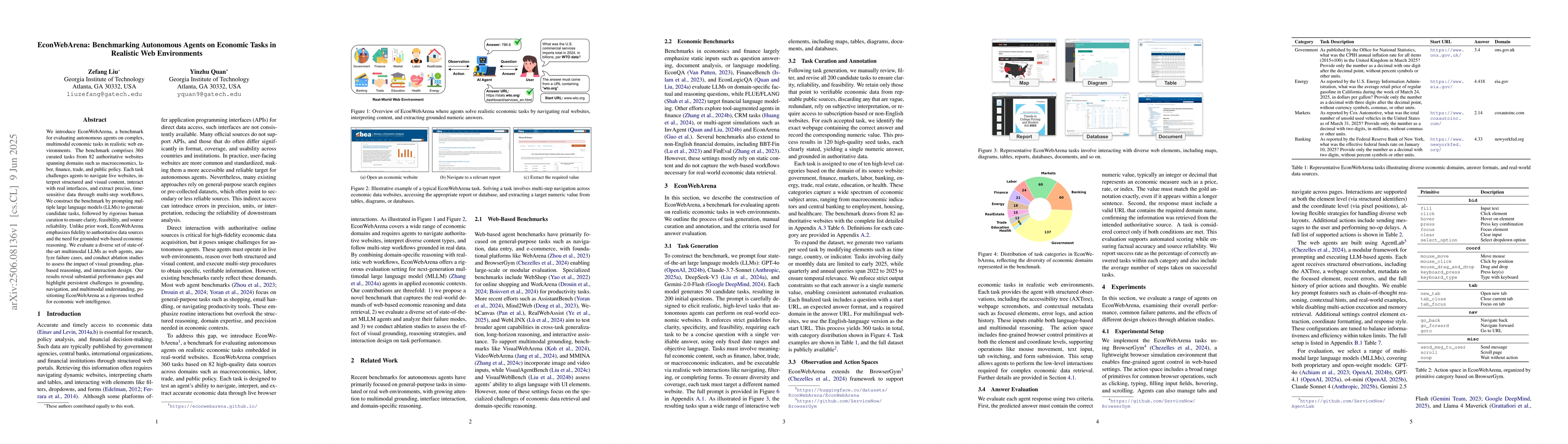 EconWebArena is a benchmark for evaluating autonomous agents on complex economic tasks in realistic web environments, highlighting performance gaps and persistent challenges in grounding, navigation, and multimodal understanding.
