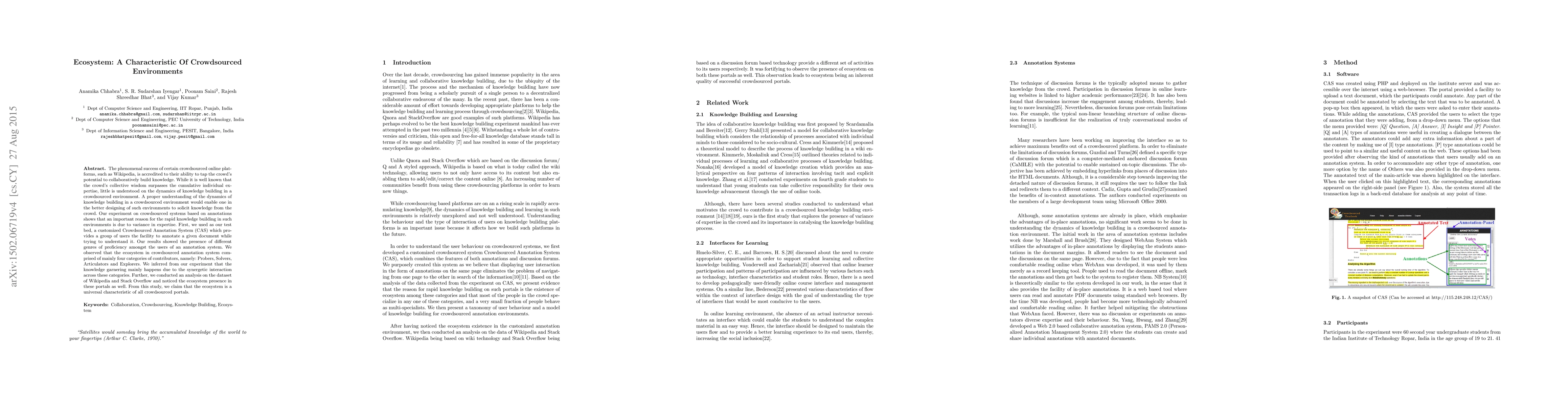 The phenomenal success of certain crowdsourced online platforms, such as Wikipedia, is accredited to their ability to tap the crowd's potential to collaboratively build knowledge. While it is well known that the crowd's collective wisdom surpasses the cumulative individual expertise, little is understood on the dynamics of knowledge building in a crowdsourced environment. A proper understanding of the dynamics of knowledge building in a crowdsourced environment would enable one in the better designing of such environments to solicit knowledge from the crowd. Our experiment on crowdsourced systems based on annotations shows that an important reason for the rapid knowledge building in such environments is due to variance in expertise. First, we used as our test bed, a customized Crowdsourced Annotation System (CAS) which provides a group of users the facility to annotate a given document while trying to understand it. Our results showed the presence of different genres of proficiency amongst the users of an annotation system. We observed that the ecosystem in crowdsourced annotation system comprised of mainly four categories of contributors, namely: Probers, Solvers, Articulators and Explorers. We inferred from our experiment that the knowledge garnering mainly happens due to the synergetic interaction across these categories. Further, we conducted an analysis on the dataset of Wikipedia and Stack Overflow and noticed the ecosystem presence in these portals as well. From this study, we claim that the ecosystem is a universal characteristic of all crowdsourced portals.