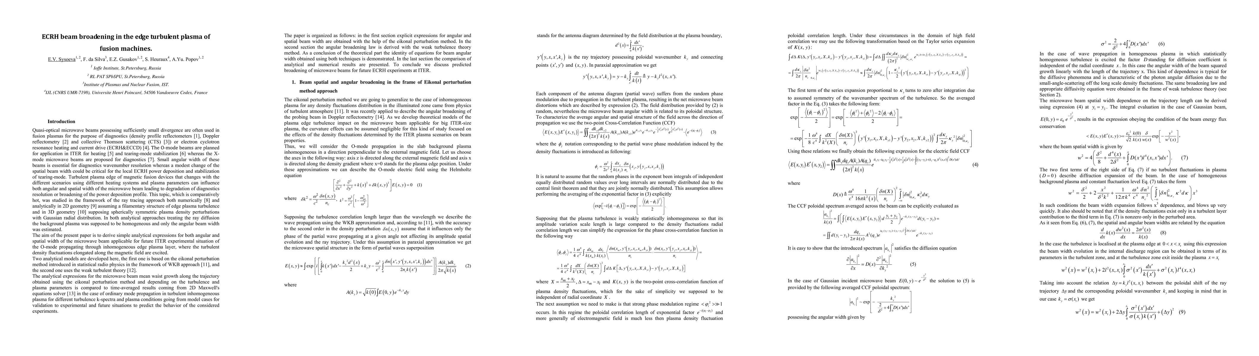This paper develops two analytical models to study the beam broadening of electron cyclotron resonance heating (ECRH) in the turbulent edge plasma of fusion machines, predicting significant spatial broadening under realistic turbulent conditions, and compares these models with numerical simulations based on 2D Maxwell's equations.