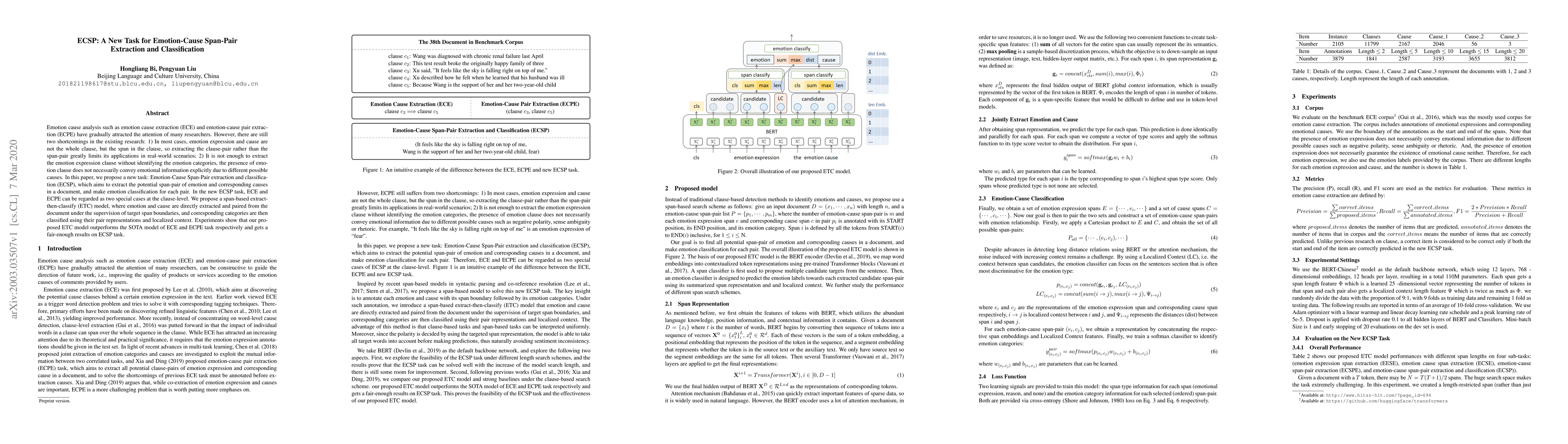 This paper introduces a new task, Emotion-Cause Span-Pair extraction and classification (ECSP), to extract emotion and cause spans and classify their emotions. The proposed span-based extract-then-classify (ETC) model outperforms existing models for emotion cause extraction and pair extraction tasks.