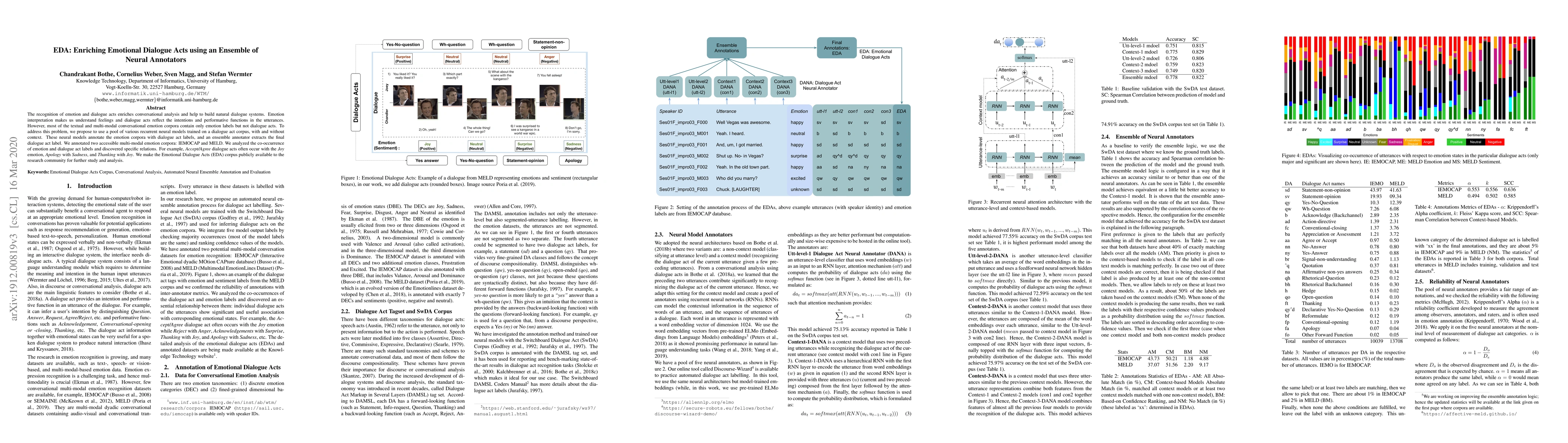 This paper proposes an ensemble of neural models to enrich multi-modal emotion corpora with dialogue act labels, addressing the lack of such annotations. The study analyzes the co-occurrence of emotions and dialogue acts, revealing specific relational patterns, and releases the enriched Emotional Dialogue Acts (EDA) corpus for further research.