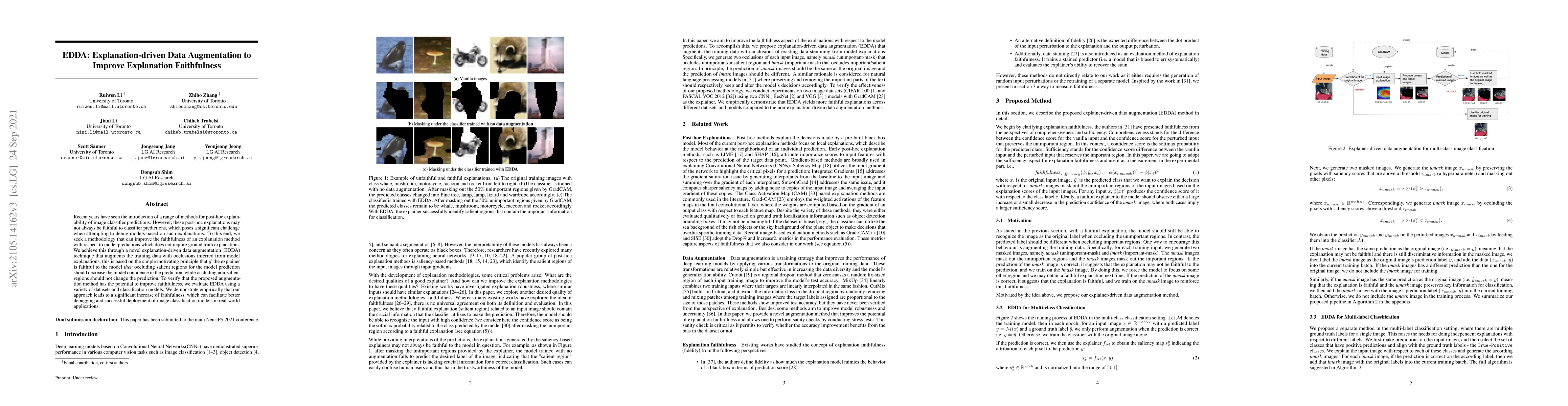 The paper introduces EDDA, an explanation-driven data augmentation technique to enhance the faithfulness of post-hoc explanations for image classifiers. By augmenting training data with occlusions inferred from model explanations, EDDA aims to improve the accuracy of these explanations without requiring ground truth explanations, thereby facilitating better debugging and deployment of image classification models.
